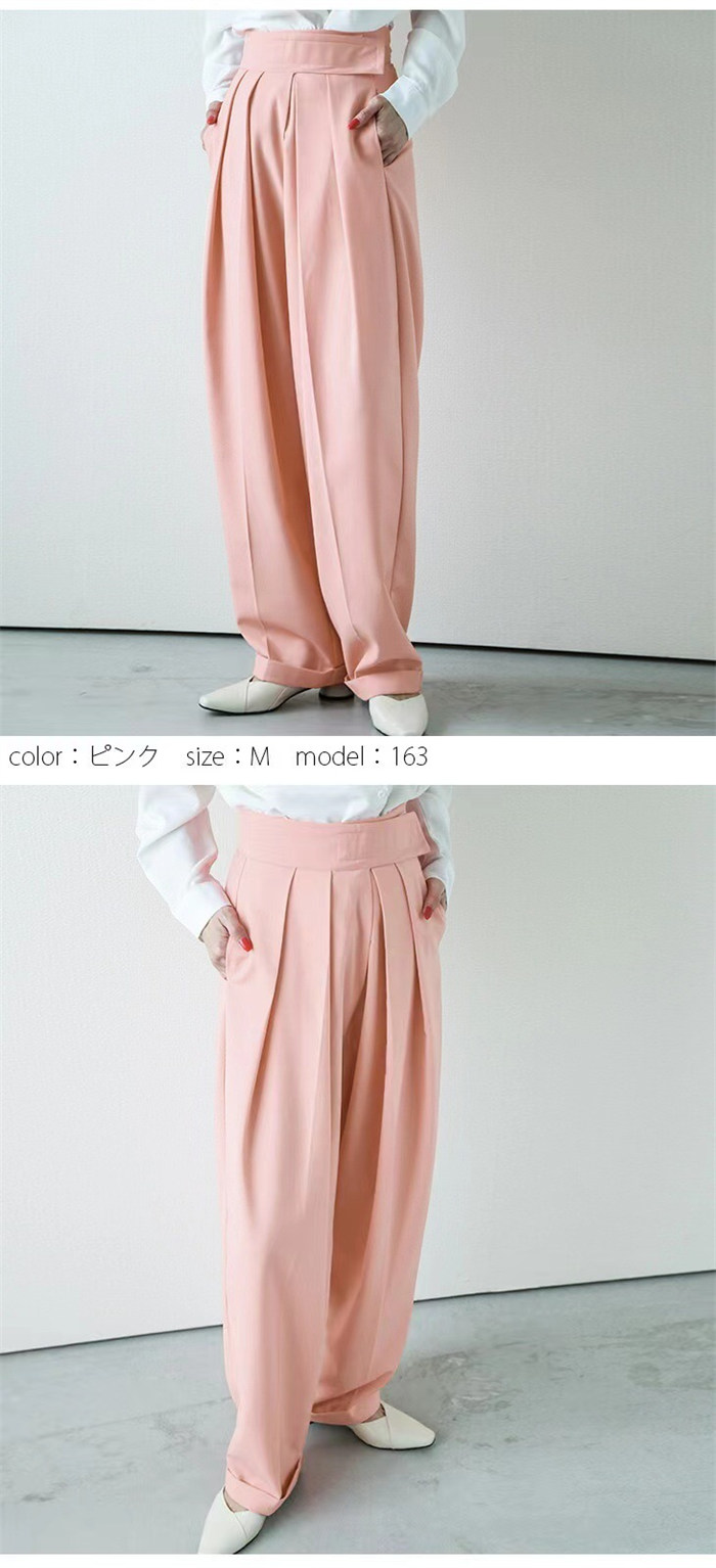 タックワイドパンツ レディース ボトム ボトムス パンツ 続々登場 M L XL ブラック ブラウン グレー ライトグレー グリーン ピンク