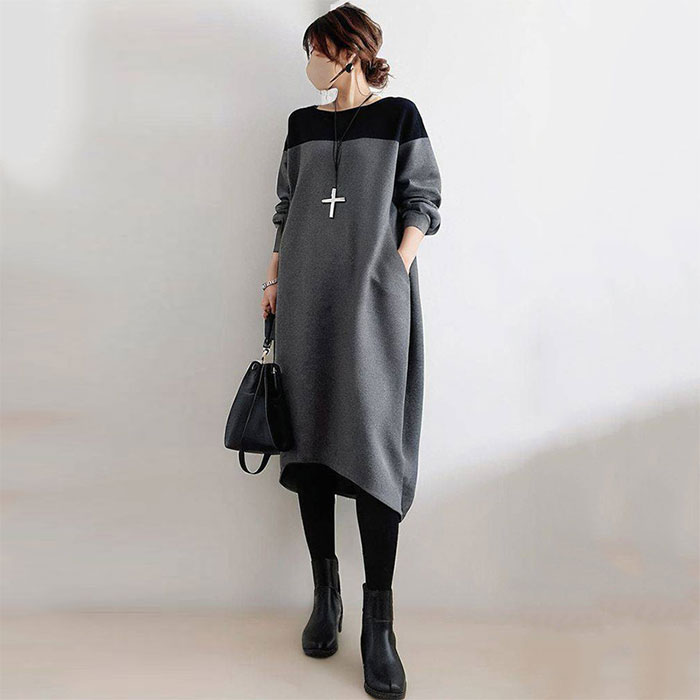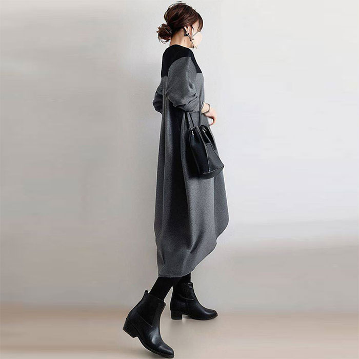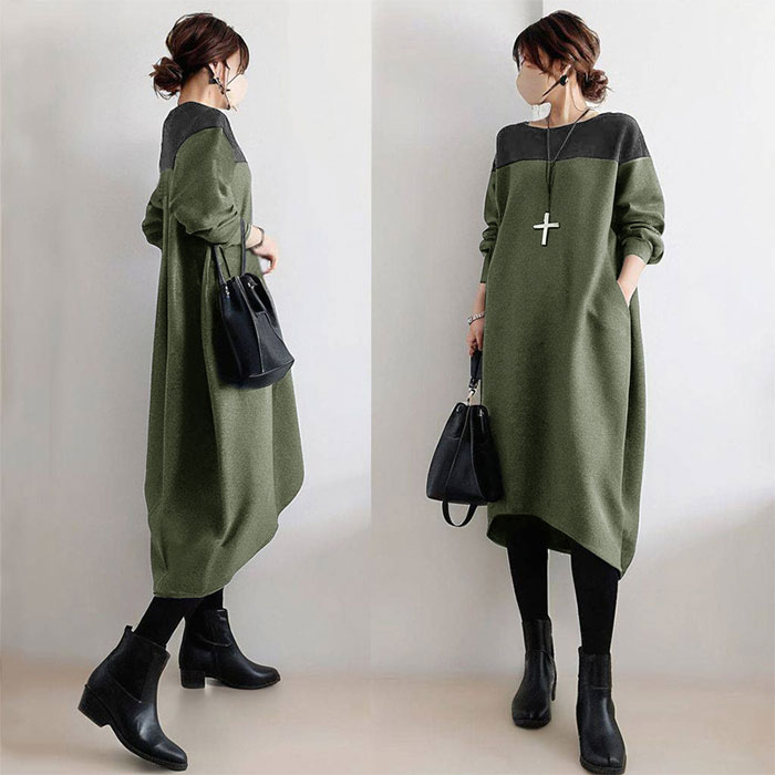 バルーンワンピース 春秋 きれいめ 大 ワンピース 新登場! グレー グリーン S M L