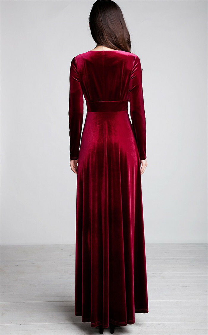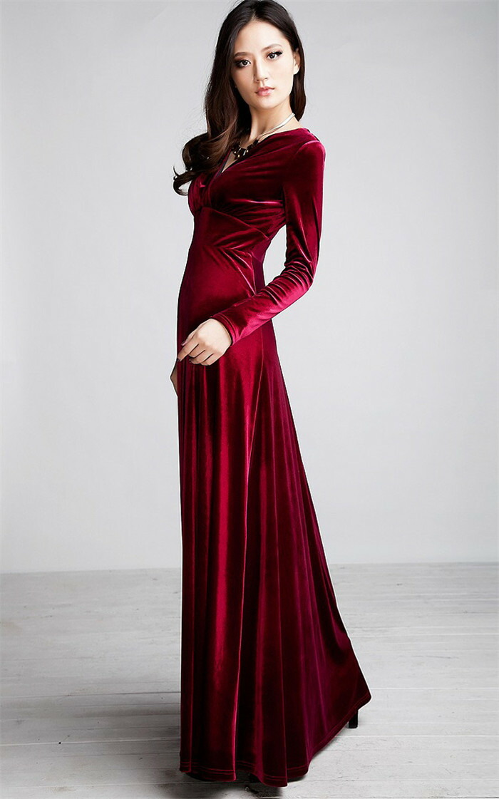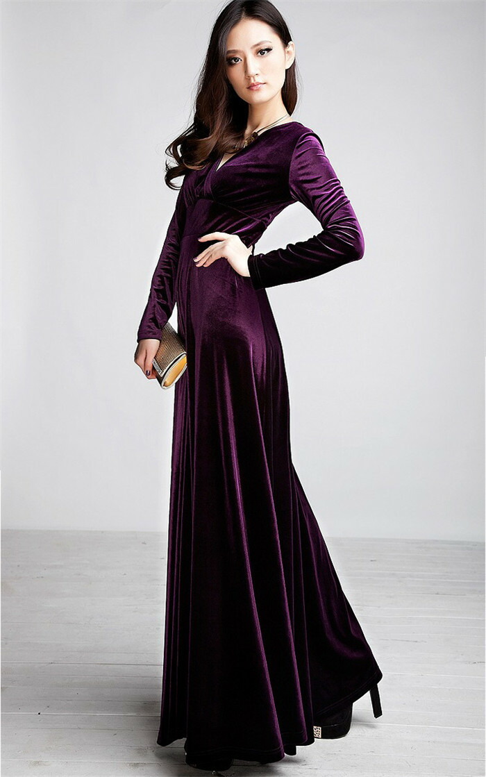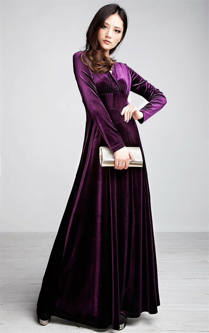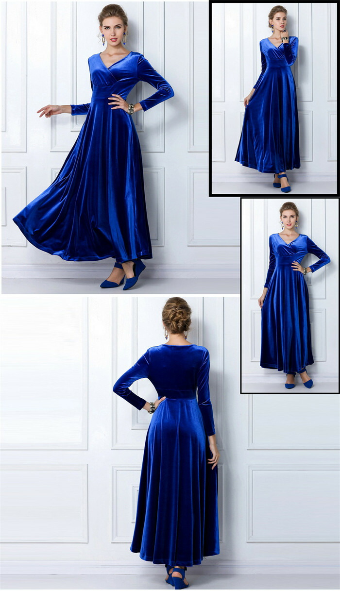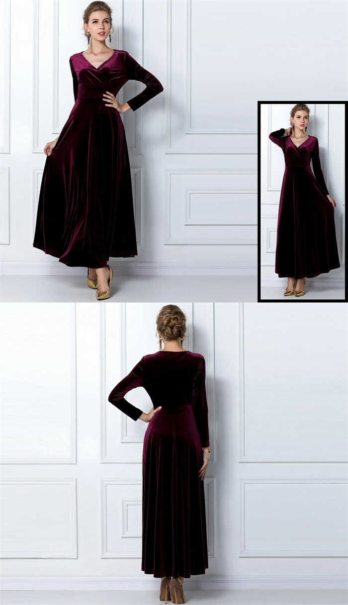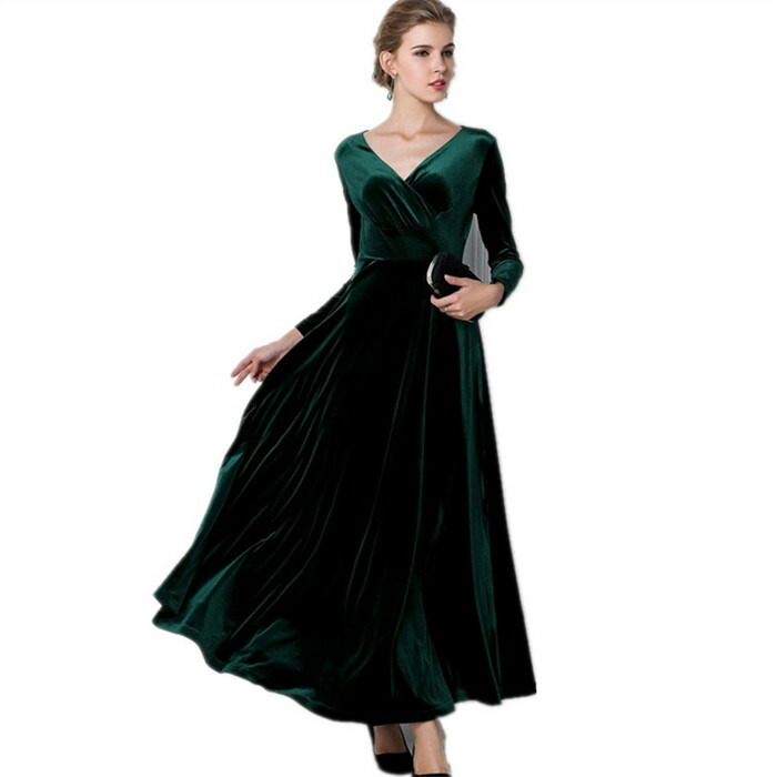 ロングワンピース ベロア レディース レディースファッション 超目玉商品 S M L XL 2XL 3XL グリーン ブラック パープル ネイビー ワインレッド