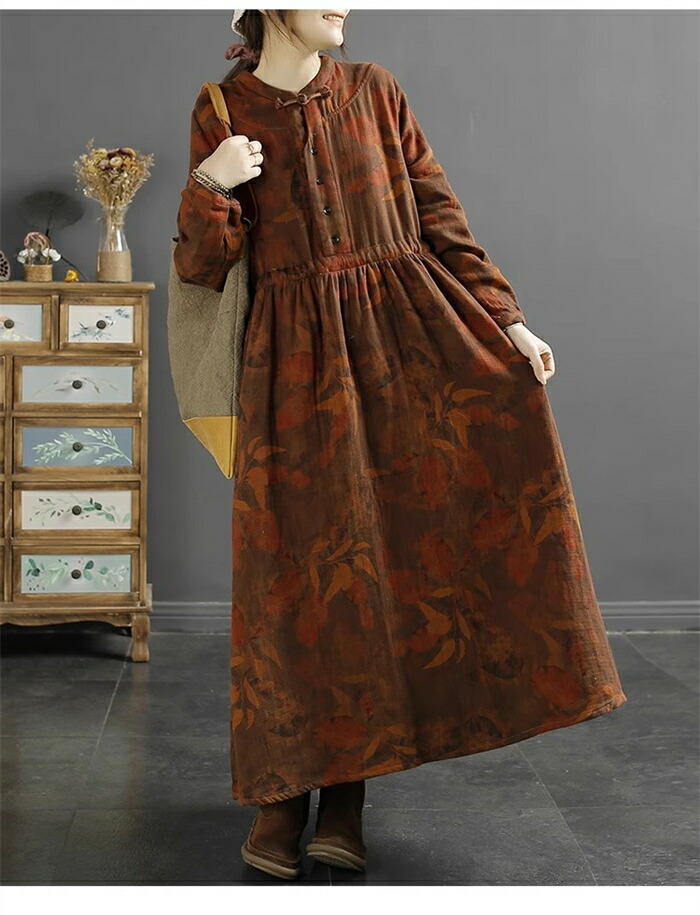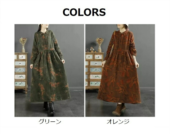ロングワンピース 長袖 秋 レディース レディースファッション 新登場! M L XL 2XL オレンジ グリーン