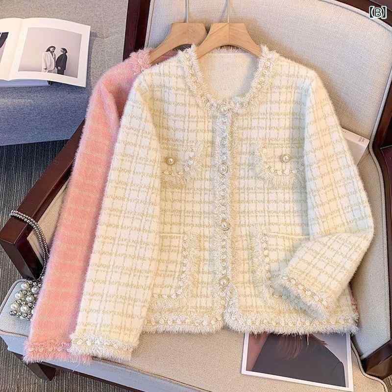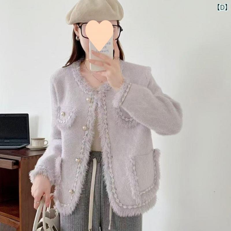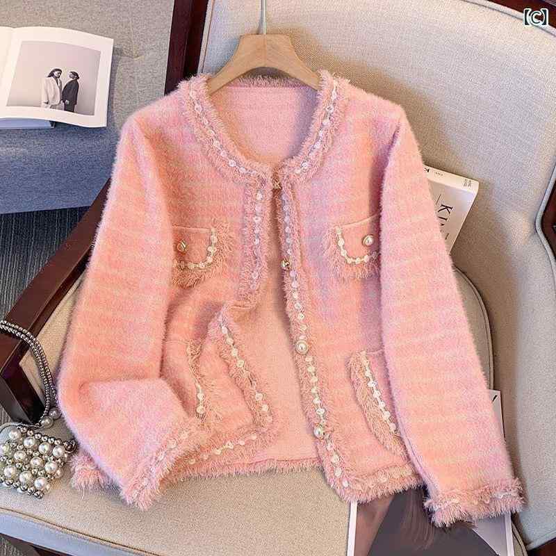 カーディガン レディース 春 ニット コート ジャケット 早い者勝ち A:シャネル風【ピンク】 B:シャネル風【白】 C:シャネル風【黒】 D:シャネル風【紫】 S M L XL 2XL 3XL