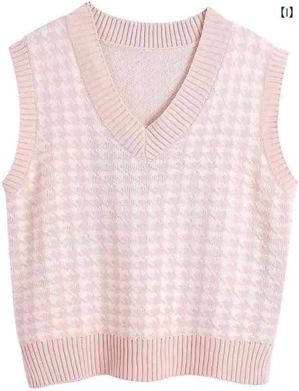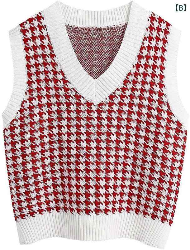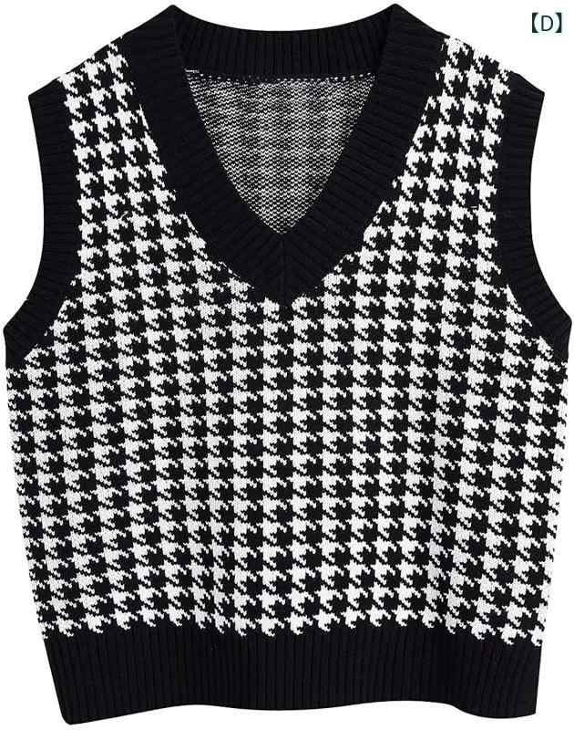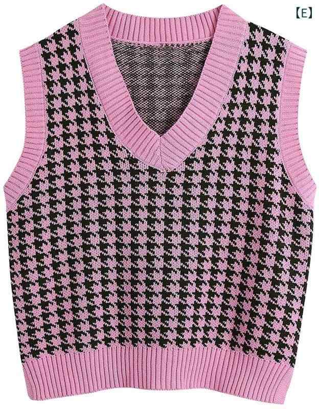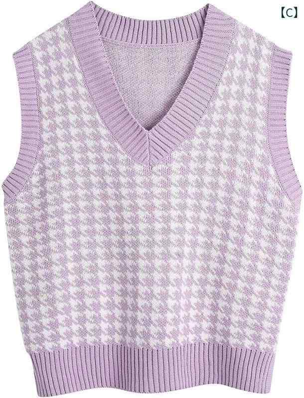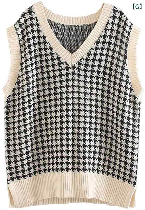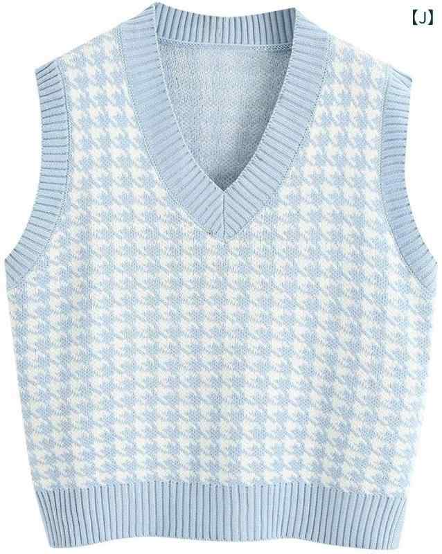 ニットベスト レディース 千鳥格子柄 レディースファッション 人気 A:カーキ B:赤 C:紫 D:黒 E:マゼンタ F:アイボリー G:杏 H:ワインレッド I:薄ピンク J:水色 K:ピンク S M L XL XXL XXXL