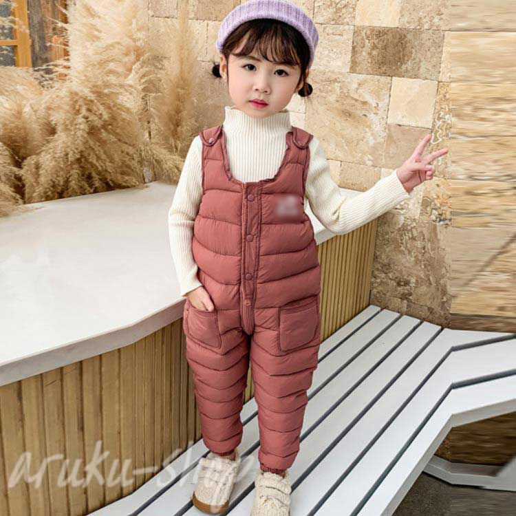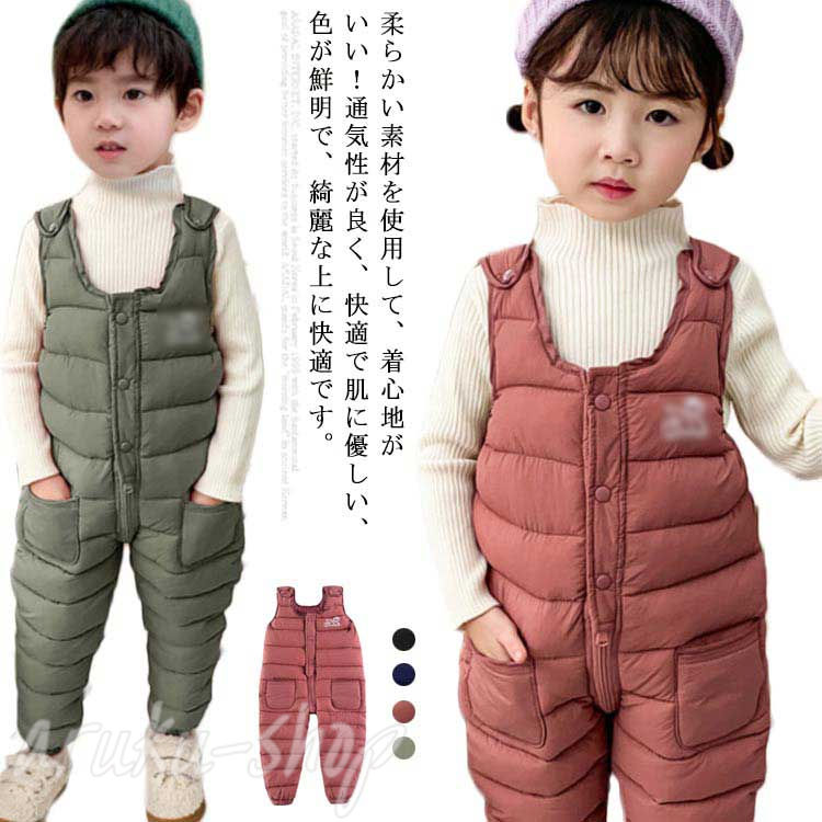 ダウンパンツ ダウン 雪遊び 冬 長ズ キッズ オーバーオール 新登場! ブラック ネイビー ピンク グリーン 80 90 100 110 120