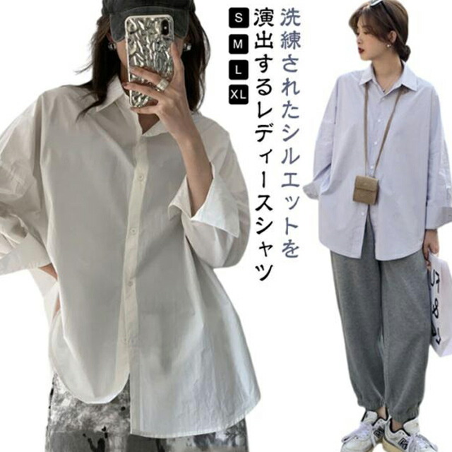ゆったり シャツ ワイシャツ リラック レディースファッション 続々登場 ホワイト ブルー S M L XL