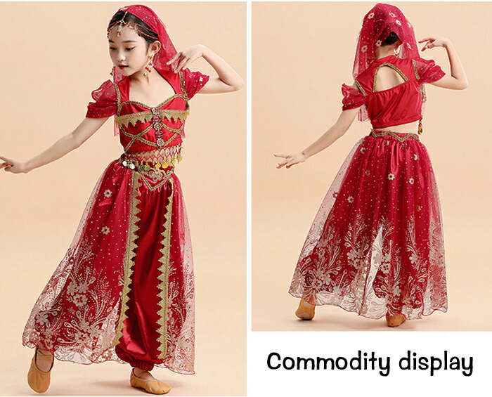 商品名:ハロウィン衣装 キッズ 仮装 こども プリンセス お姫様 ジャスミン 6点セット パンツセット スカートセット なりきり ベリーダンス 衣装 子供 レッスン着 半袖 アラビアン 衣装 女の子 セットアップ コスチューム アラビアン ドレス ダンス衣装 誕生日 プレゼント