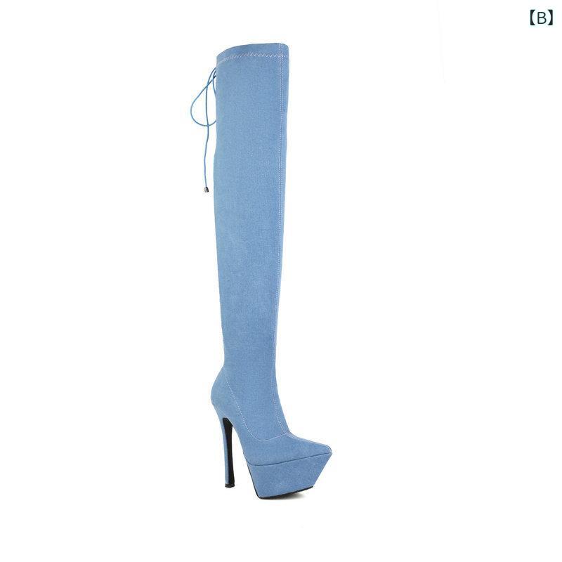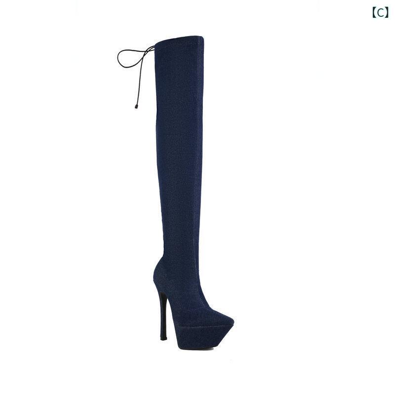 ニーハイブーツ レディース デニム ポ 靴 通販 A:黒 B:水色 C:紺色 34 35 36 37 38 39 40返品交換不可 41返品交換不可 42返品交換不可 43返品交換不可