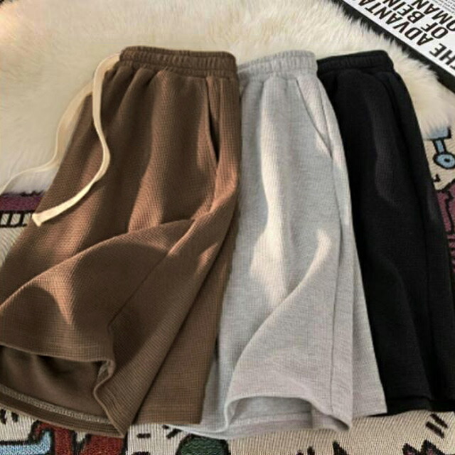 ハーフパンツ メンズ ジュニア ワッフ ズボン パンツ 続々登場 ブラック カーキ アプリコット グレー ホワイト M L XL 2XL 3XL 4XL 5XL