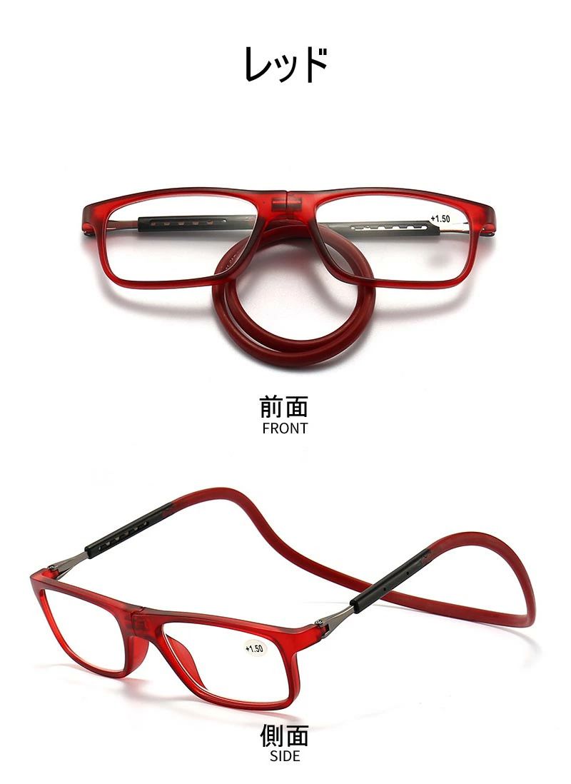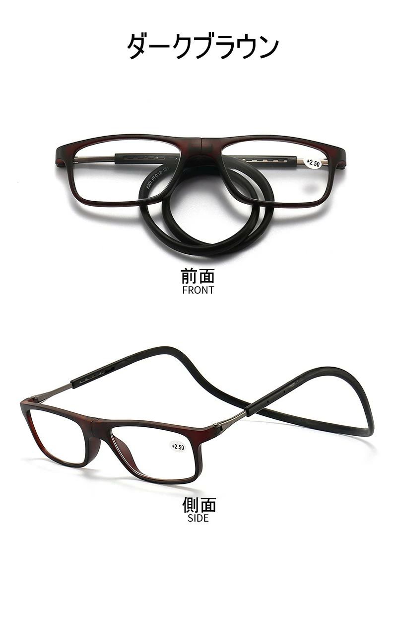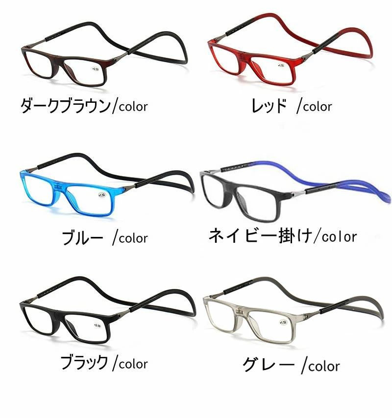 紛失防止老眼鏡 強力マグ スマート 首 眼鏡 サングラス 老眼鏡 人気 ダークブラウン レッド ブルー ネイビー掛け ブラック グレー +1.00 +1.50 +2.00 +2.50 +3.00 +3.50 +4.00