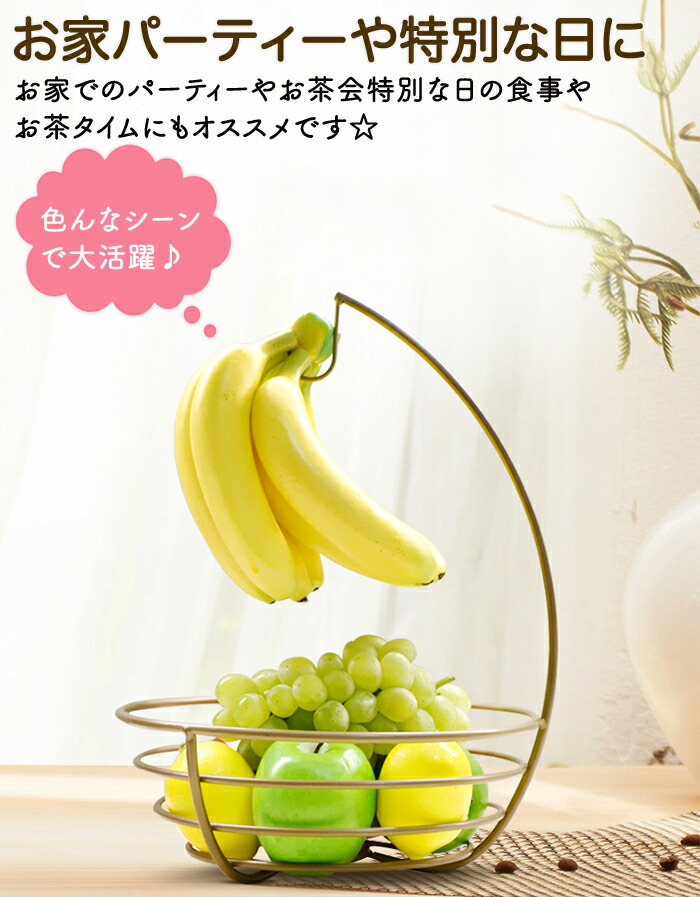 商品名:バナナスタンド バナナスタンド付きフルーツバスケット バナナホルダー 果物かご お菓子入れ 盛り付け 果物入れ 果物バスケット バナナ吊り下げ 吊るす 小物入れ 収納 菓子器 お茶会 お出迎え 丈夫 鮮度 鮮度長ち 来客 内祝 家庭用 リビング おしゃれ ギフト 贈り物