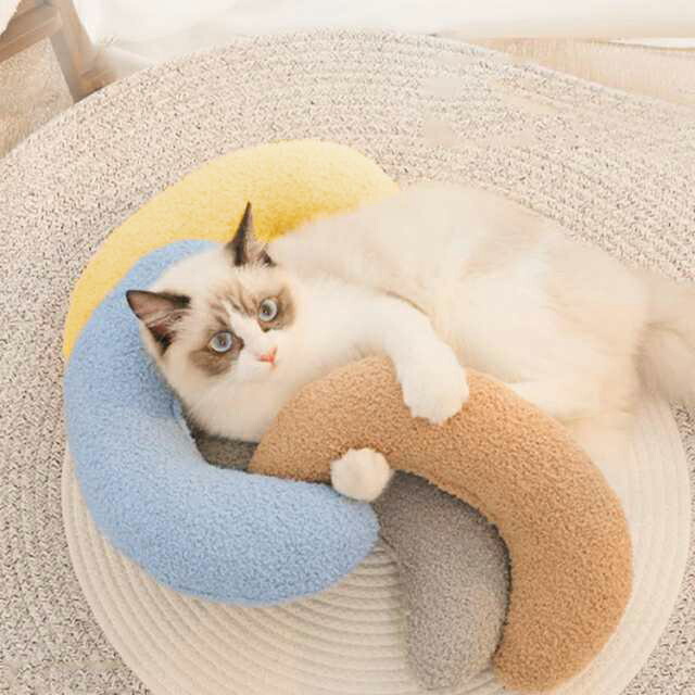 あごのせ猫枕 クッション 猫のU字型枕 犬用品 ベッド マット 寝具 あご枕 枕 早い者勝ち イエロー ホワイト ブルー ブラウン