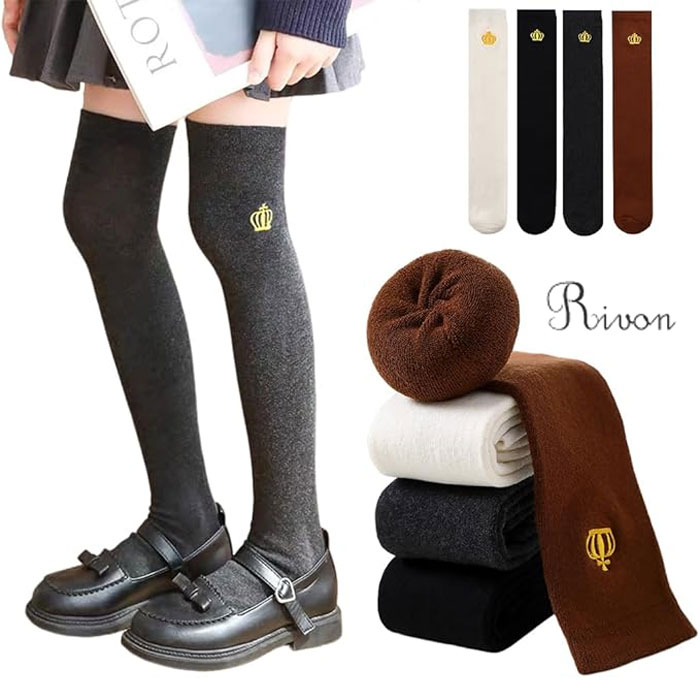 ニーハイソックス キッズ 暖かい 保温 レディース 靴下 レッグウェア 靴下 豊富 ブラック グレー オフホワイト コーヒー