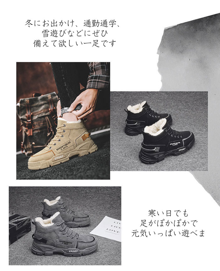 スノーブーツ メンズ 防寒ブーツ 防滑 メンズ靴 スノーシューズ 新作 ブラック グレー ブラウン 39(内寸24.5cm) 40(内寸25cm) 41(内寸25.5cm) 42(内寸26cm) 43(内寸26.5cm) 44(内寸27cm)