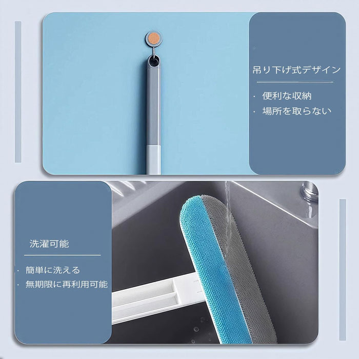 追加の便利機能&収納のしやすさ:背面にシリコンストリップ付き 多機能&実用性を兼ね備えたデザイン!背面のシリコンストリップは、ミニスクイージーとしても使用でき、鏡やガラスの水滴を簡単に拭き取ることができます吊り下げ収納デザイン 使用後はフックに掛けるだけで、簡単に収納でき、生活空間をスッキリ整えられます
