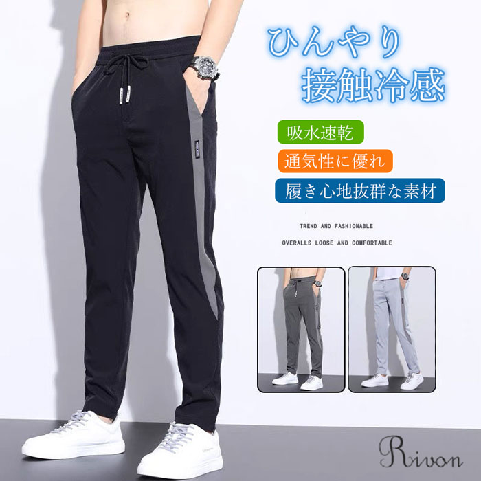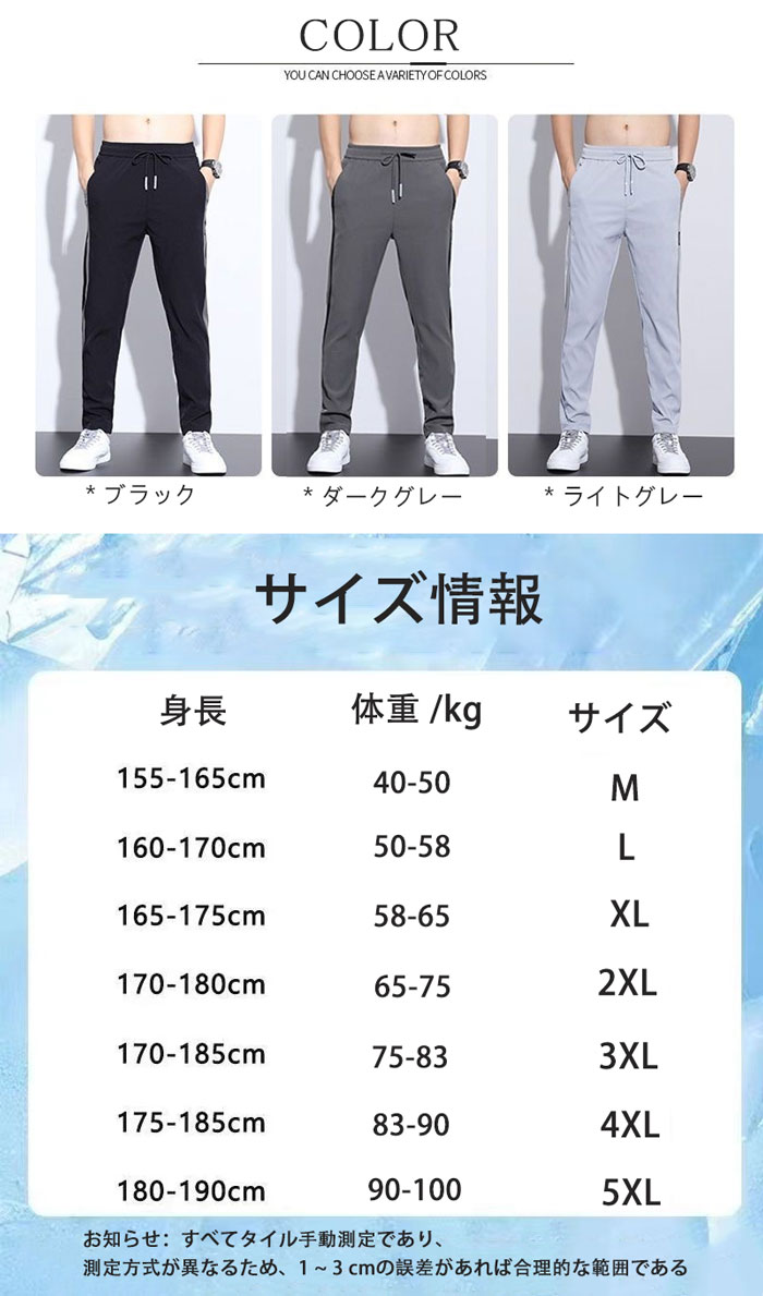 接触冷感 ズボンメンズ 薄手 イージー ズボン パンツ 早い者勝ち ブラック ライトグレー ダークグレー M L XL 2XL 3XL 4XL 5XL