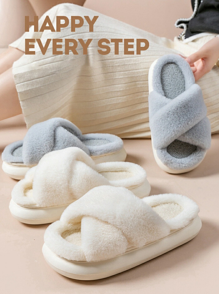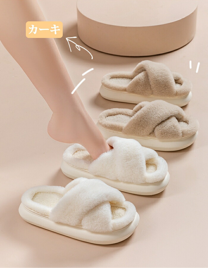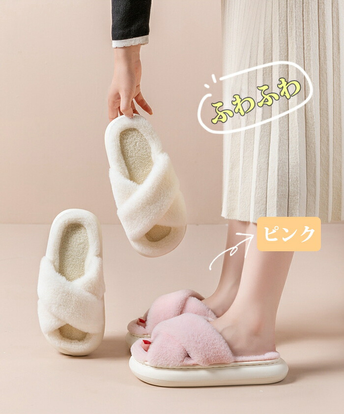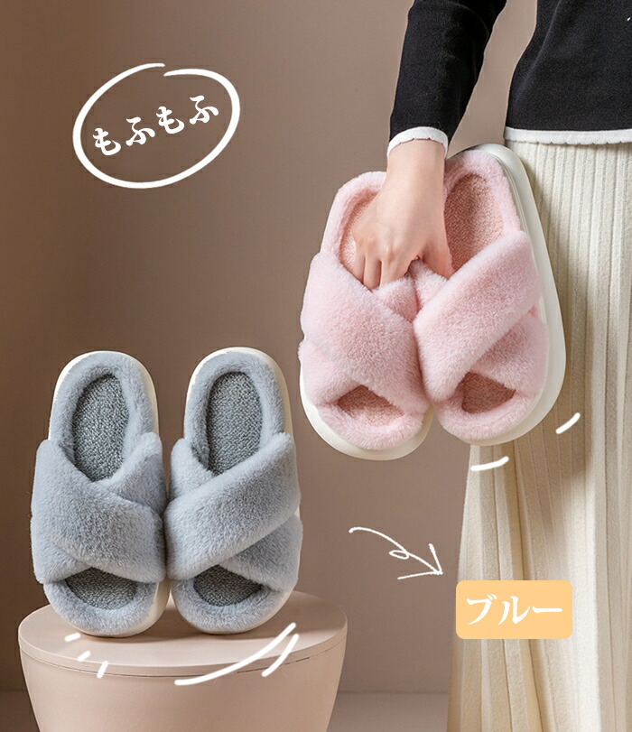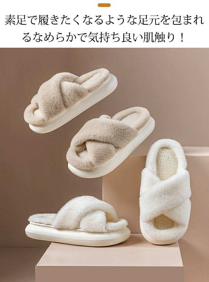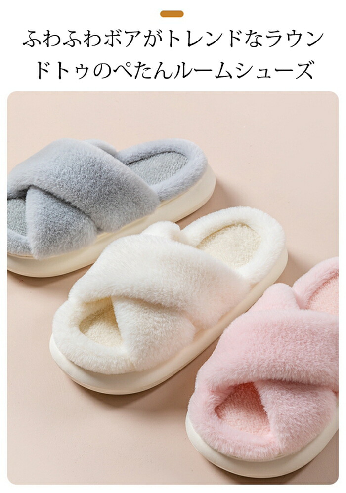 商品名:ルームシューズ スリッパ クロスベルト レディース 靴 ボアスリッパ もこもこ オープントゥデザイン 美脚 前空き ローカット オフィス 上履き サンダル ボアサンダル フラットシューズ あったか ふわふわ かわいい 柔らか 室内履き おしゃれ 冬
