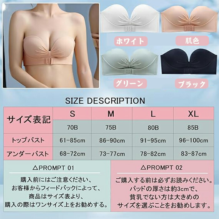 ストラップレスブラ チューブトップ 紐 レディース インナー 下着 ブラジャー 人気 グリーン 肌色 ホワイト ブラック S M L XL