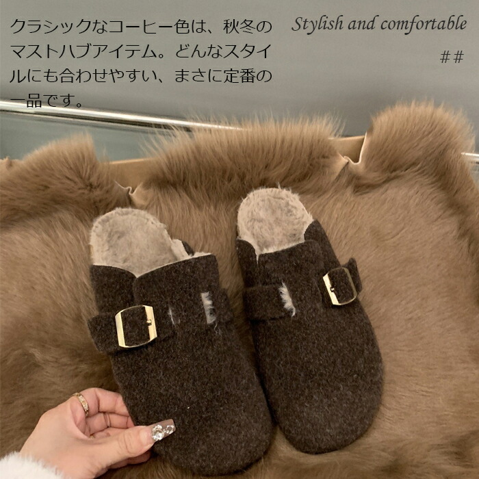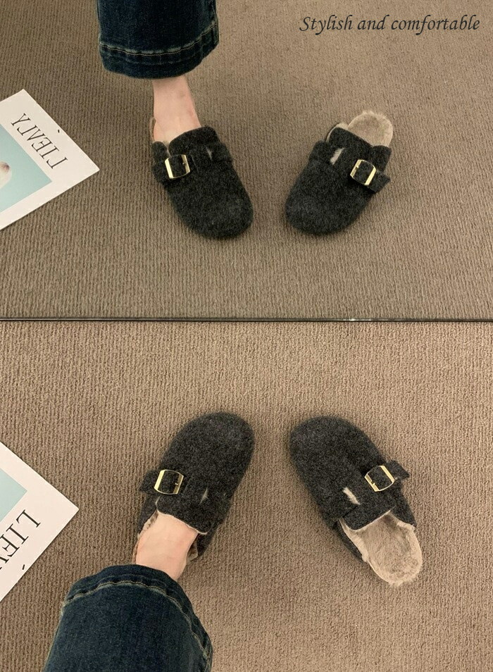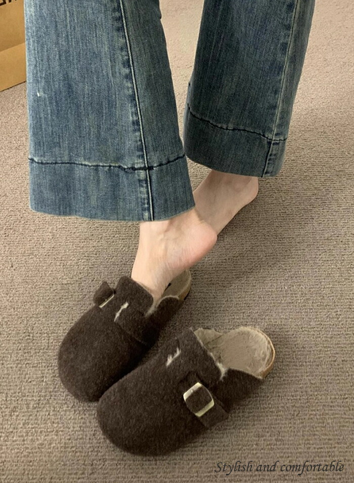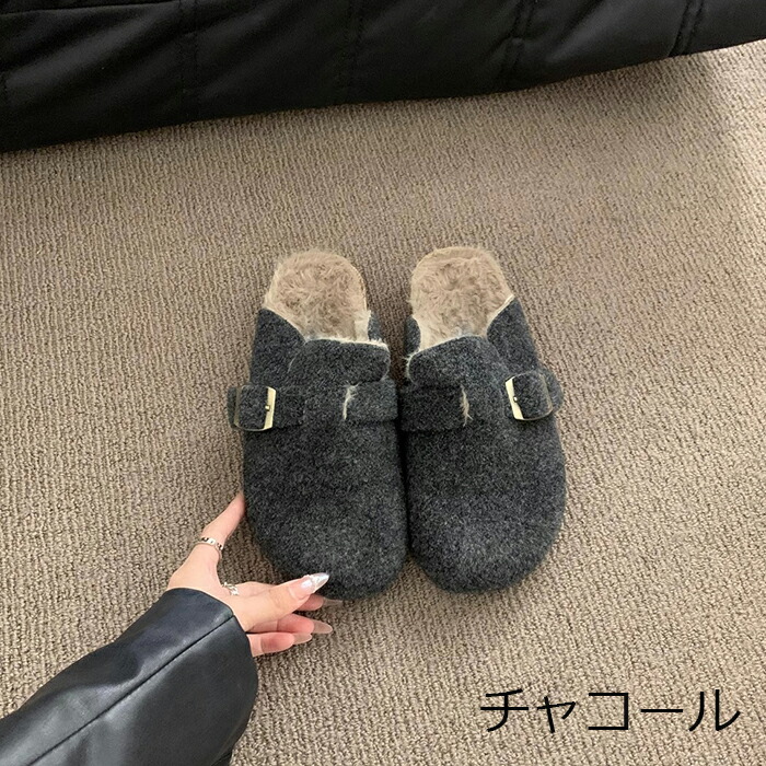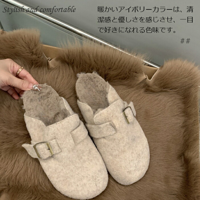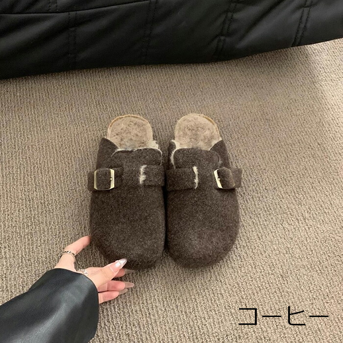 レディース ファーサンダル 包頭 サボ ボアサンダル スリッパ 秋冬 もこもこ ミュールサンダル オフィスサンダル かかとなし ストレートバックル 室内履き 室外 ふわふわ 防寒 カジ ルームシューズ