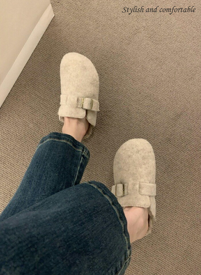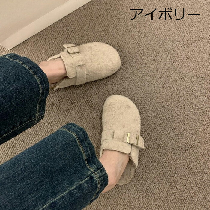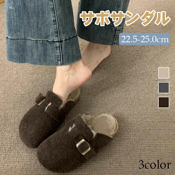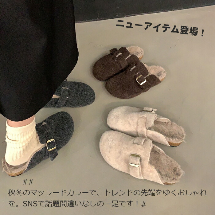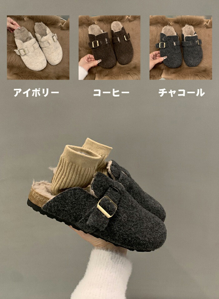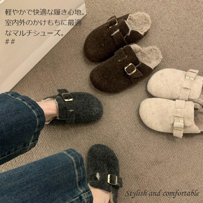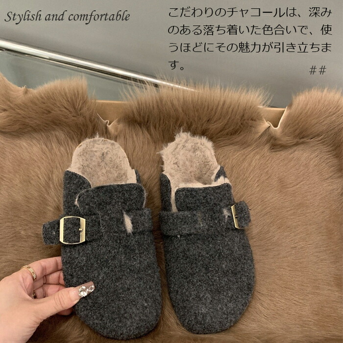 レディース ファーサンダル 包頭 サボ ボアサンダル スリッパ 秋冬 もこもこ ミュールサンダル オフィスサンダル かかとなし ストレートバックル 室内履き 室外 ふわふわ 防寒 カジ ルームシューズ