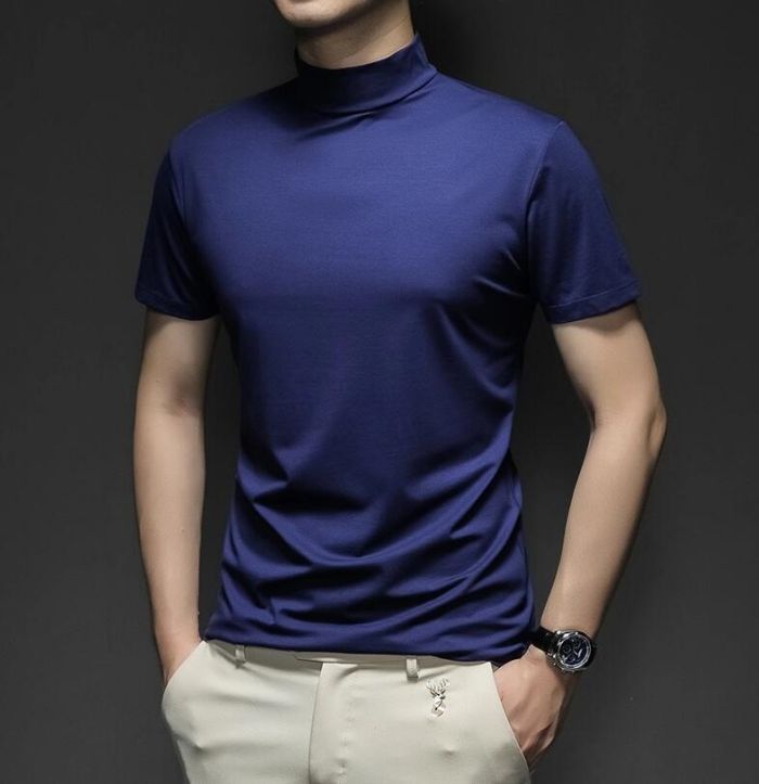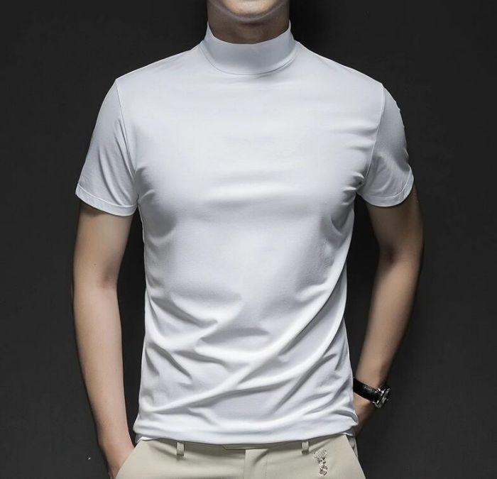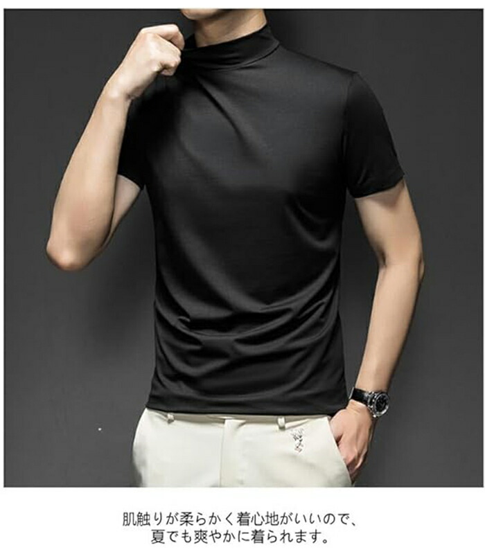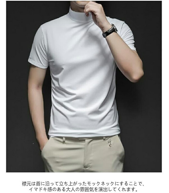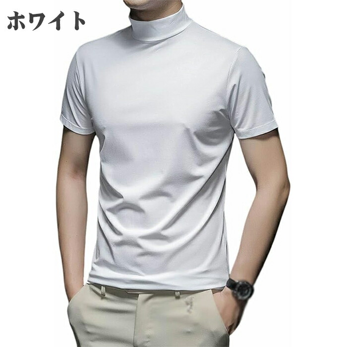 ハイネック シャツ半袖 Tシャツ トッ トップス Tシャツ カットソー 人気 ネイビー ワインレッド ホワイト ブラック グレー M L XL 2XL 3XL 4XL
