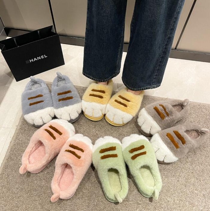 女性用猫足スリッパ、かわいい面白い3D 日用品雑貨 文房具 手芸 人気 グレー イエロー ピンク グリーン ブラウン 36-37(内寸23-23.5cm) 38-39(内寸24-24.5cm) 40-41(内寸25-25.5cm)