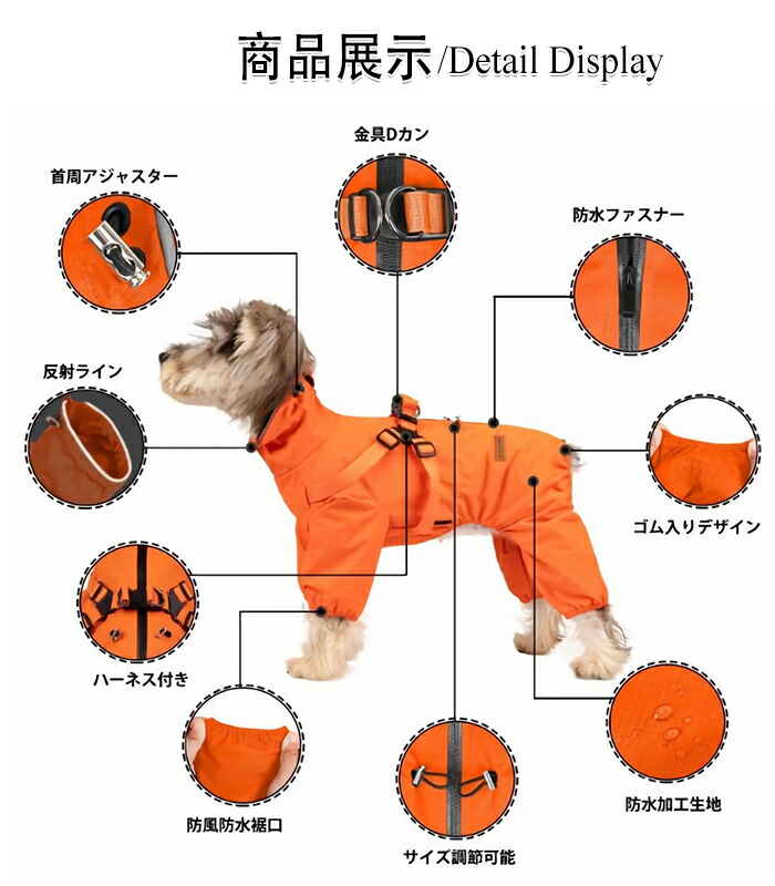 犬 レインコート ハーネス付き フルカ 犬用品 ドッグウェア レインコート 早い者勝ち オレンジ ブラック ダークグレー レッド パープル S M L XL 2XL 3XL 4XL 5XL 6XL
