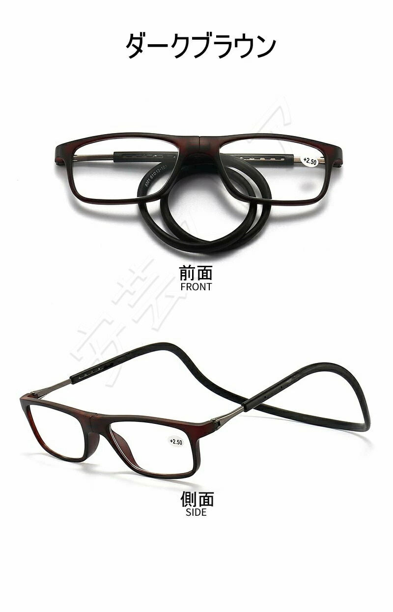 紛失防止老眼鏡 強力マグ スマート 首 眼鏡 サングラス 老眼鏡 人気 ダークブラウン レッド ブルー ネイビー掛け ブラック +1.00 +1.50 +2.00 +2.50 +3.00 +3.50 +4.00