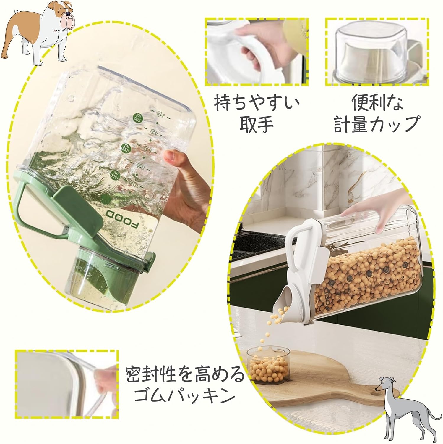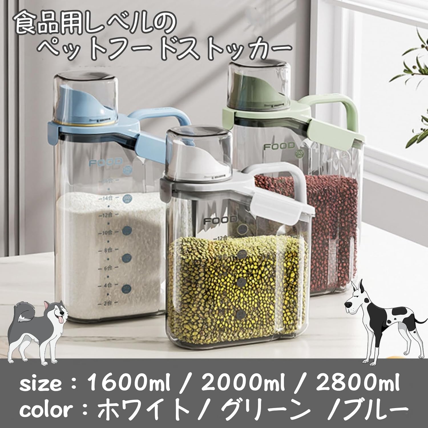 鮮度を保つ 食材 計量カップ付き 保存 保存容器 調味料入れ 保存容器 キャニスター 新登場! ホワイト ブルー グリーン 1.6L 2.0L 2.8L