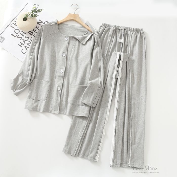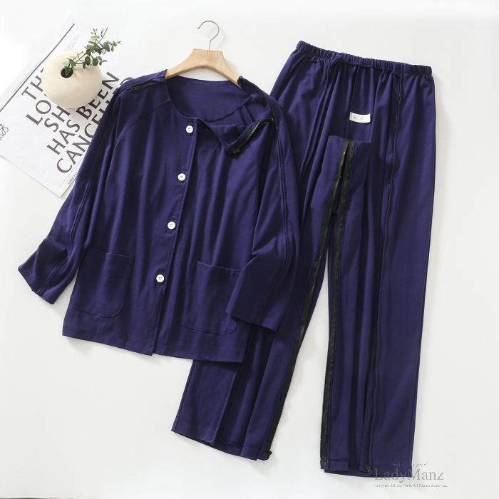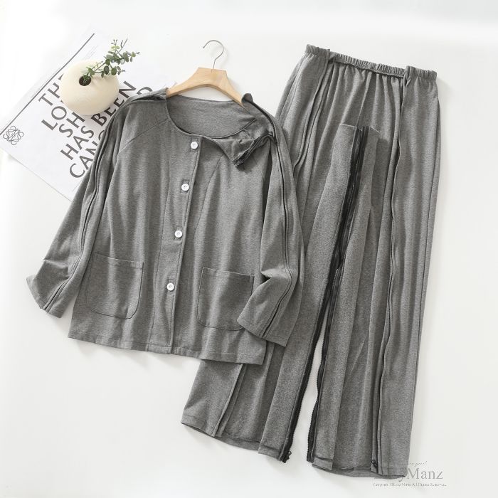 新発売 介護用パジャマ 寝たきり 長袖 グレー(メンズ) ダークグレー(メンズ) ネイビー(メンズ) グレー(レディース) パープル(レディース) ピンク(レディース) M L XL XXL