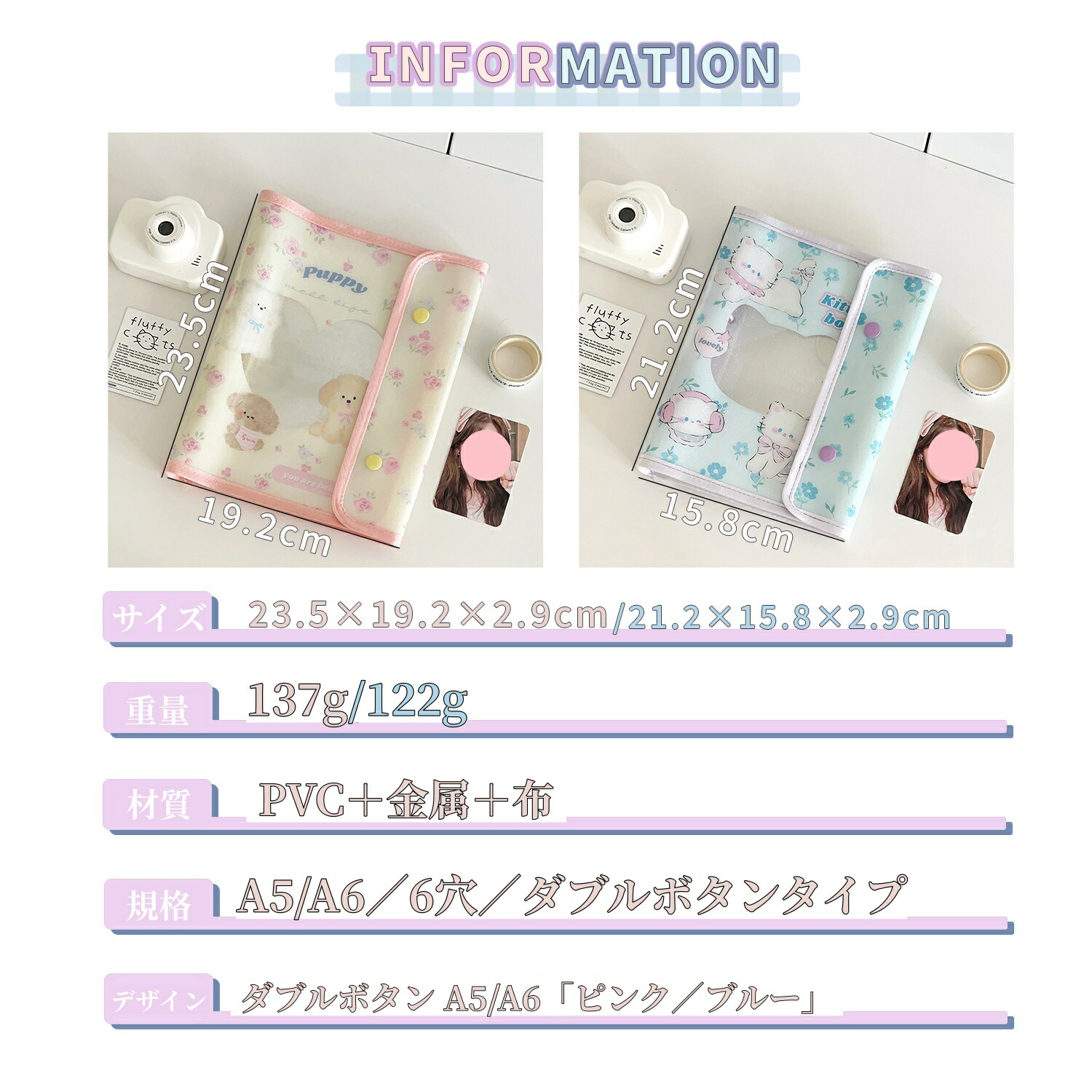 シール帳カバー PVCカバー A5 A 文房具 事務用品 手帳 ノート 手帳 超目玉商品 A6 ブルー A6 ピンク A5 ブルー A5 ピンク リファイルなし リファイル10枚付き