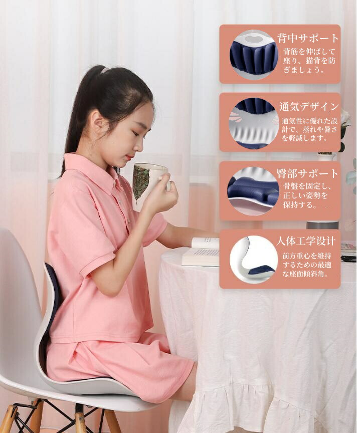 姿勢矯正 椅子 姿勢サポートチェア 腰 グリーン ピンク ネイビー ブラック グレー A【36*30*34CM】 A【32*27*30CM】 B【41*33*41CM】