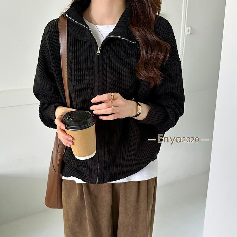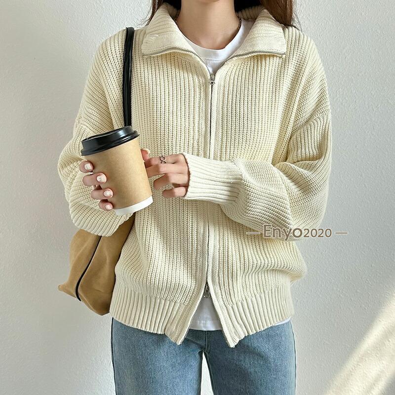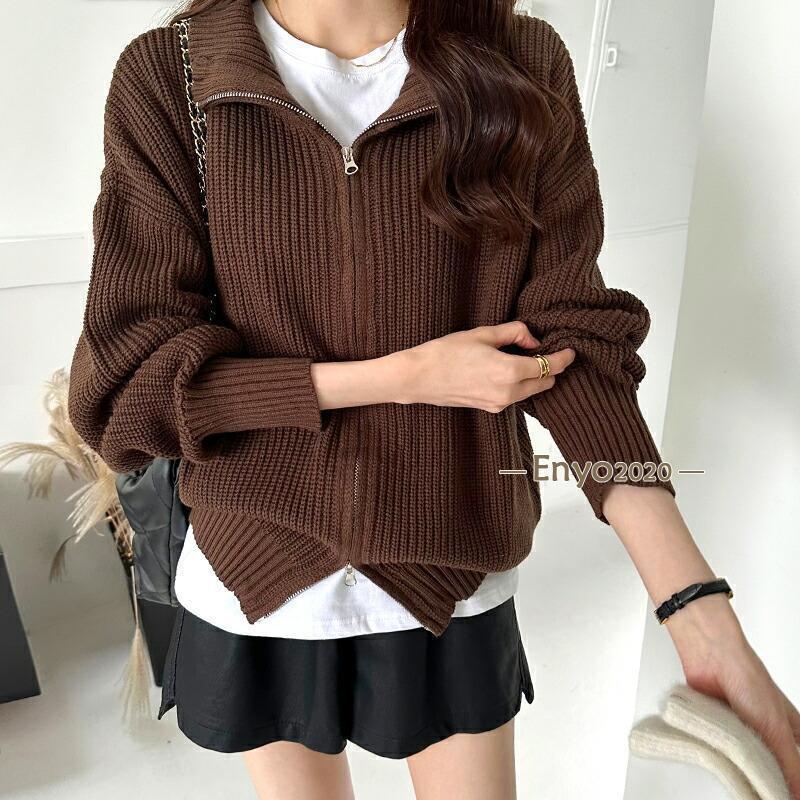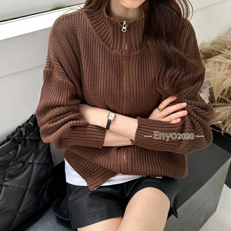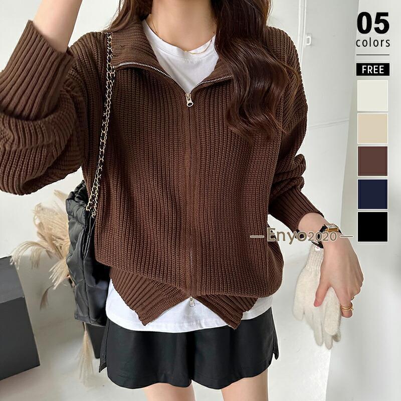 ニット ダブルジップ カーディガン レ トップス カーディガン ボレロ 早い者勝ち ブラック ベージュ アイボリー ネイビー ブラウン