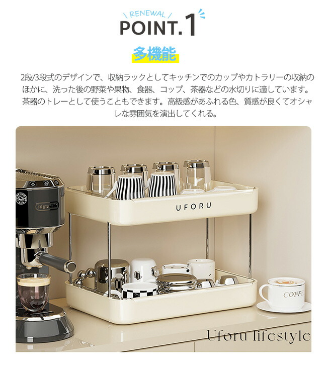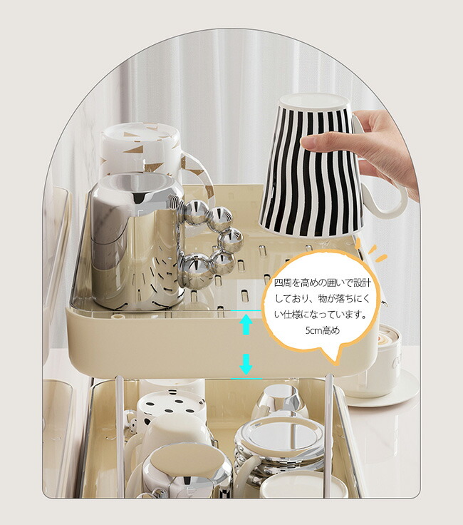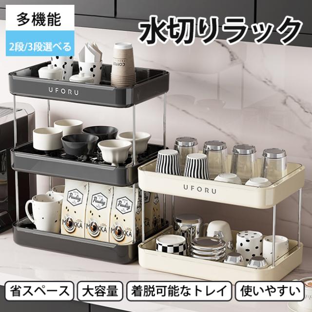 コップ 収納 カップラック 食器 水切 キッチン用品 食器 調理器具 続々登場 オフホワイト ブラック 2段 3段
