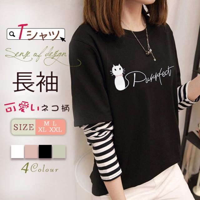 長袖Tシャツ レディース tシャツ長袖 レディースファッション 特集 ホワイト ピンク ブラック グリーン M L XL XXL
