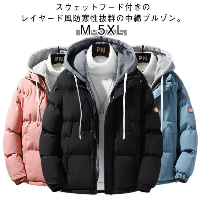 コート 重ね着風 フード付き 中綿ジャ コート ジャケット 早い者勝ち ブラック アイボリー ピンク ブルー M L XL 2XL 3XL 4XL 5XL