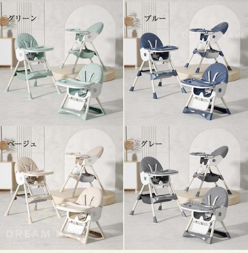 多機能 折りたたみ ベビーチェア ハイ スタンダード 新世代(3WAY) グリーン 模様1 グリーン 模様2 ピンク 模様入り ピンク 無地 グリーン 無地 ブルー ベージュ グレー
