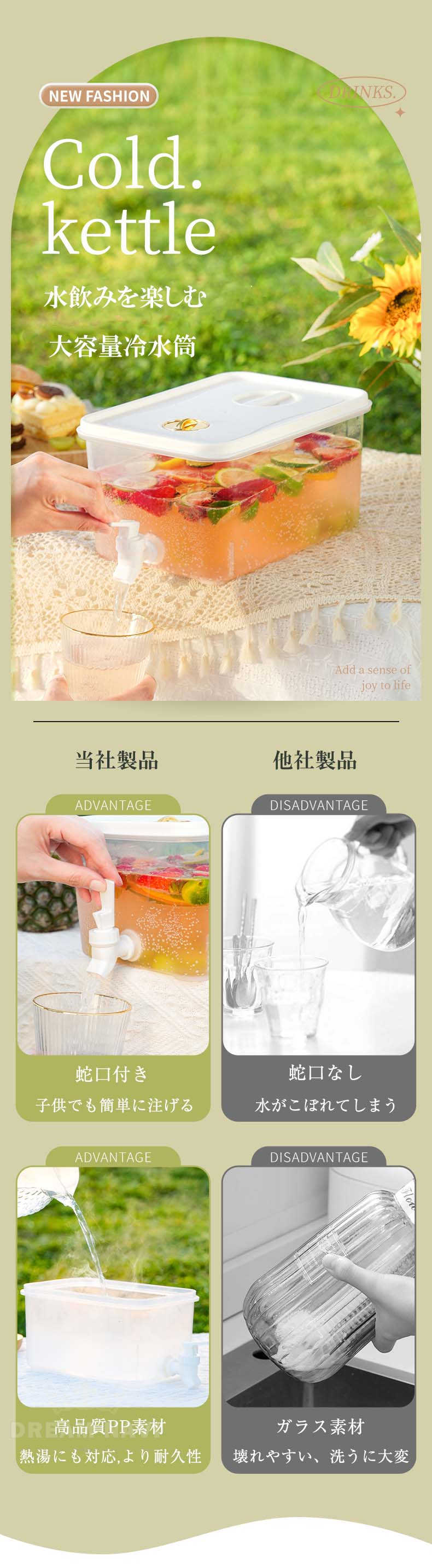 冷水筒 冷水ポット 蛇口付き 3L 5 コーヒー お茶用品 ピッチャー 冷水筒 豊富 2.8L 5L 8.8L 13L