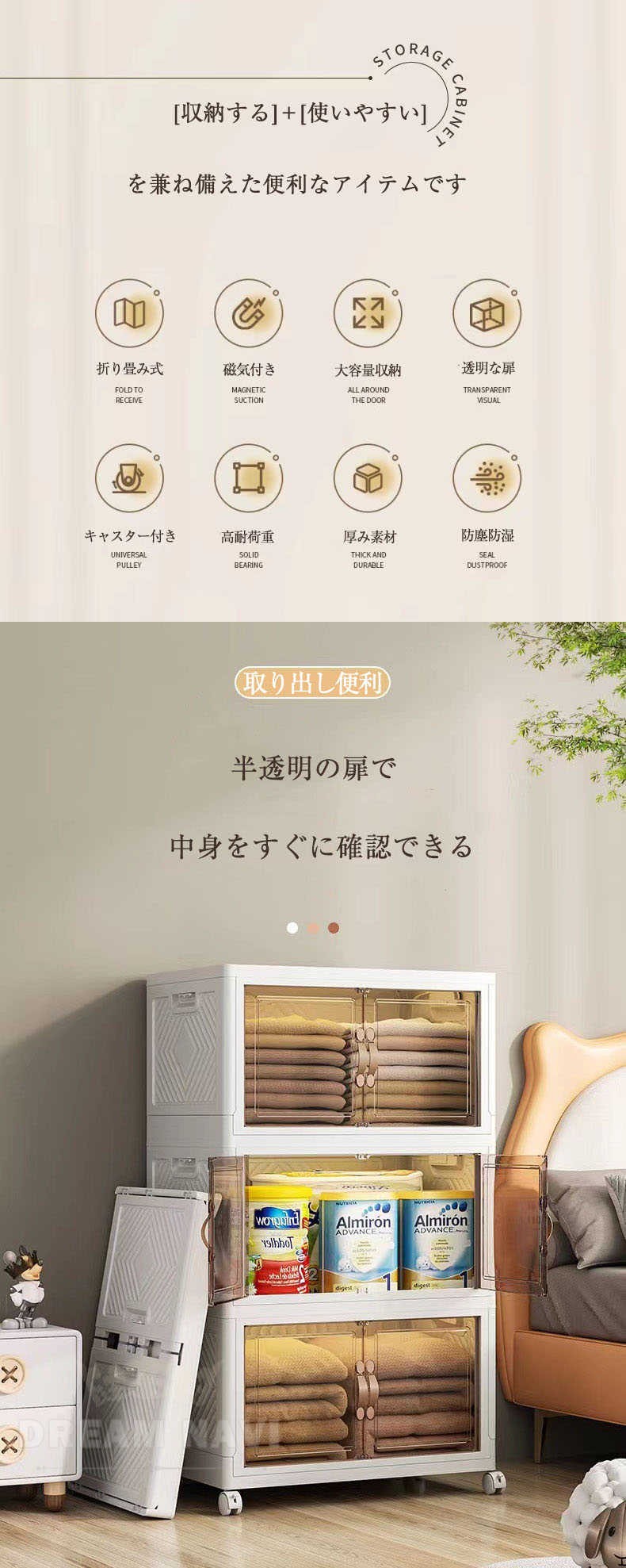 収納ボックス キャスター付き 折畳み S(幅45cm) M(幅50cm) L(幅60cm) XL(幅70cm) 一段 二段 三段 四段 五段