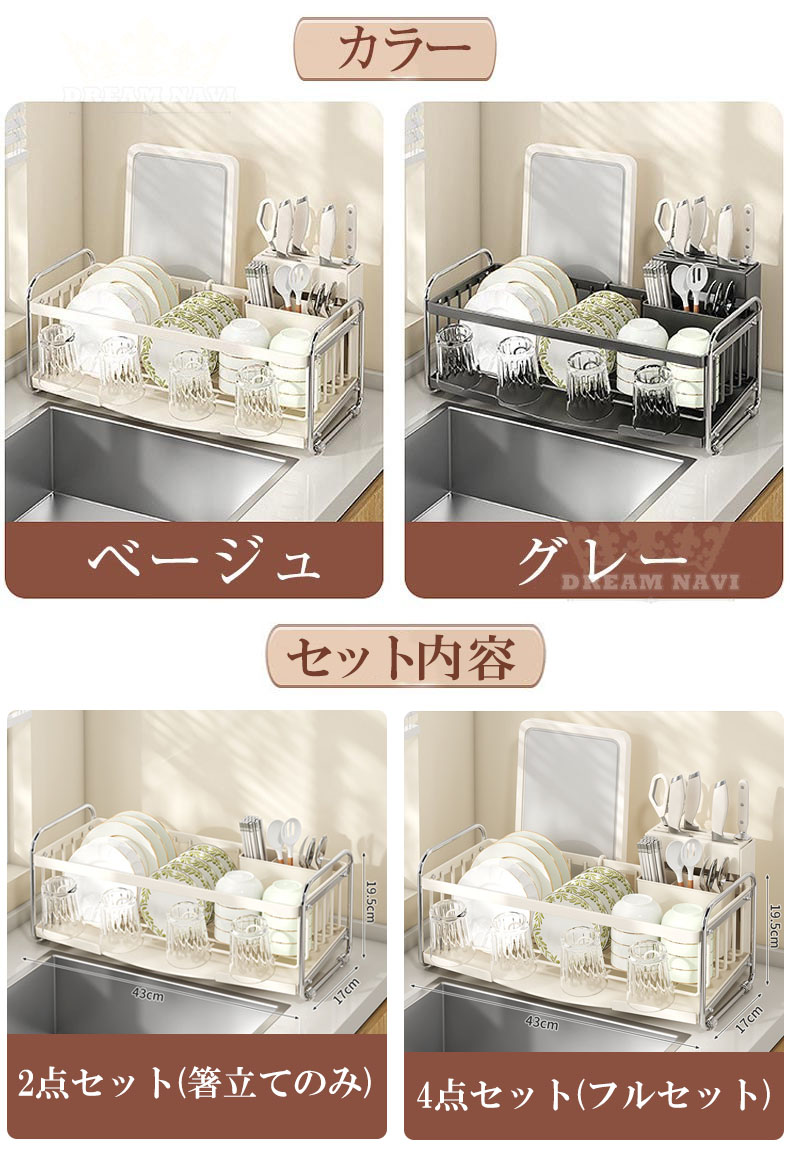 水切りラック 食器 水切りかご 大容量 キッチン整理用品 水切りラック 超目玉商品 ベージュ グレー 2点セット 4点セット