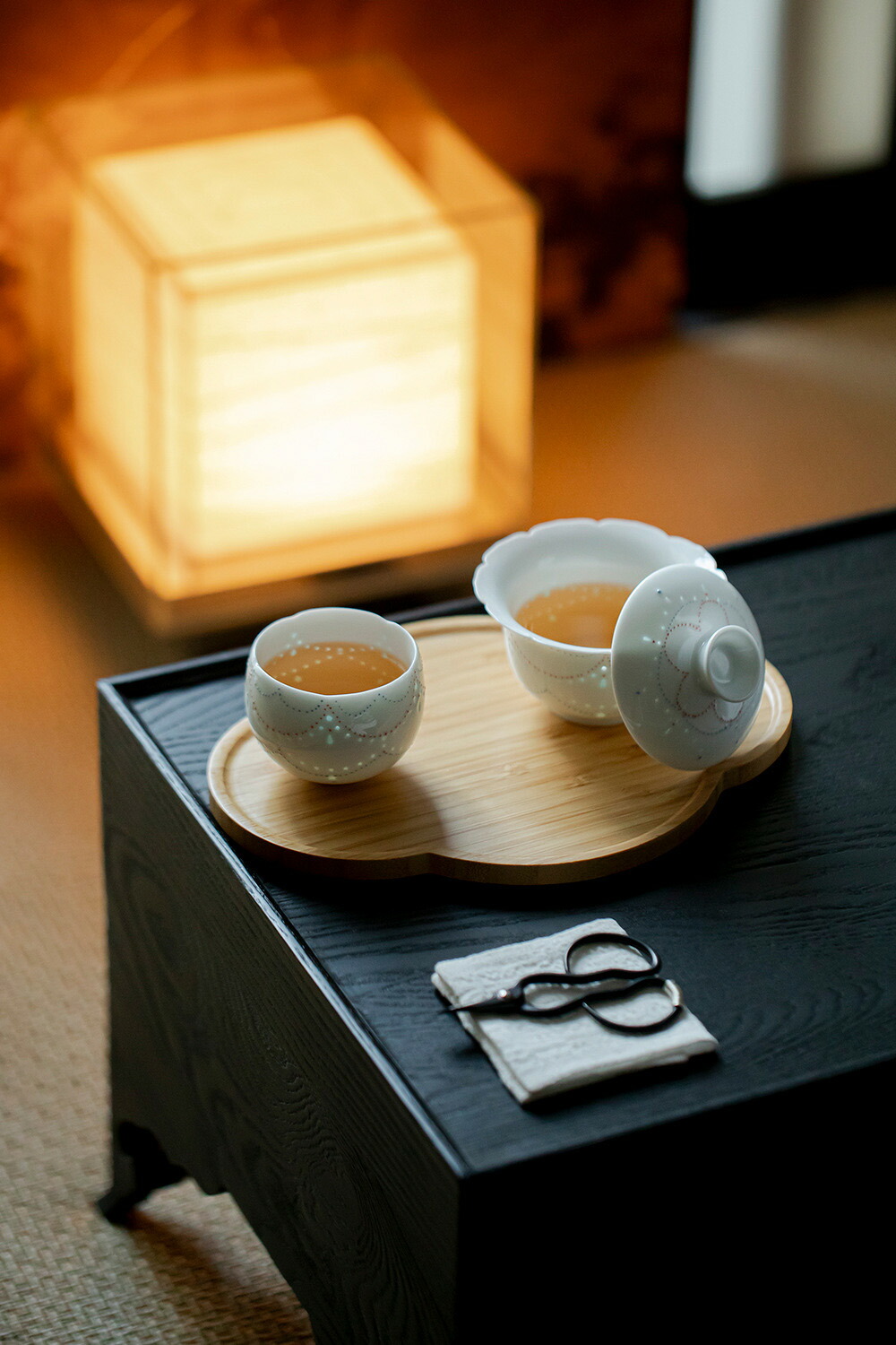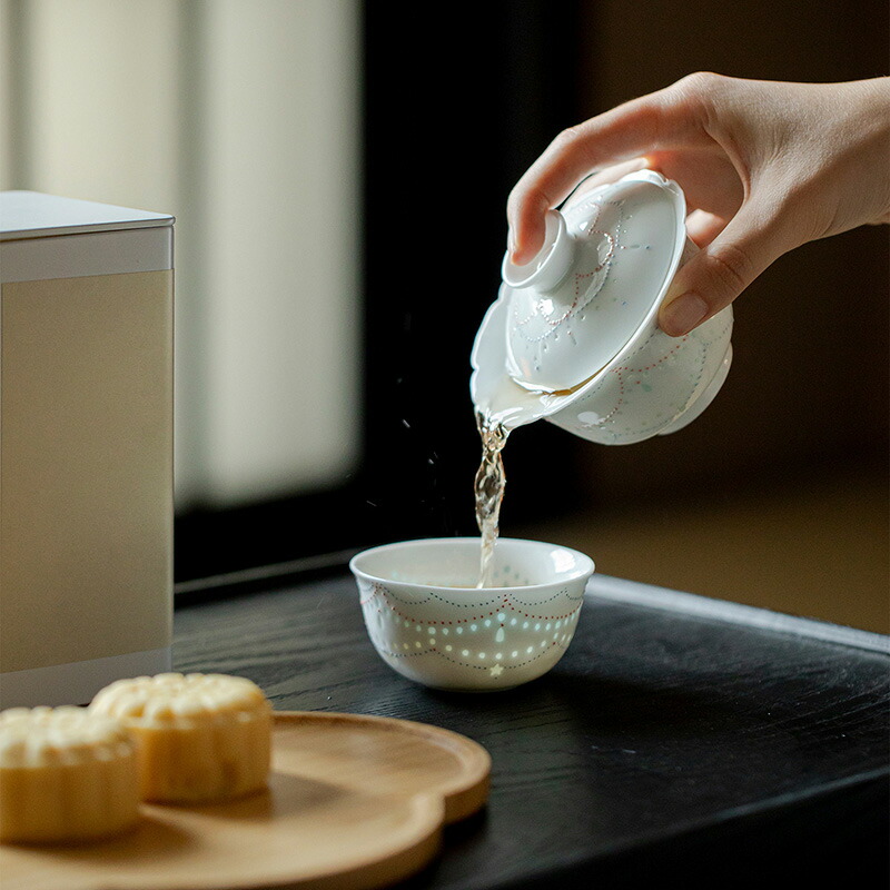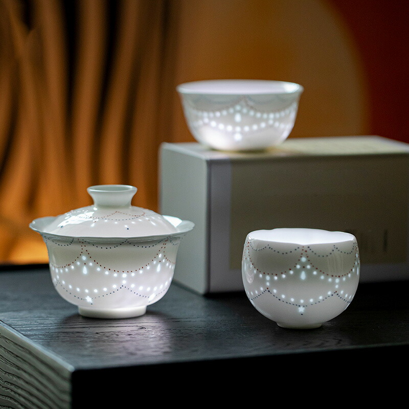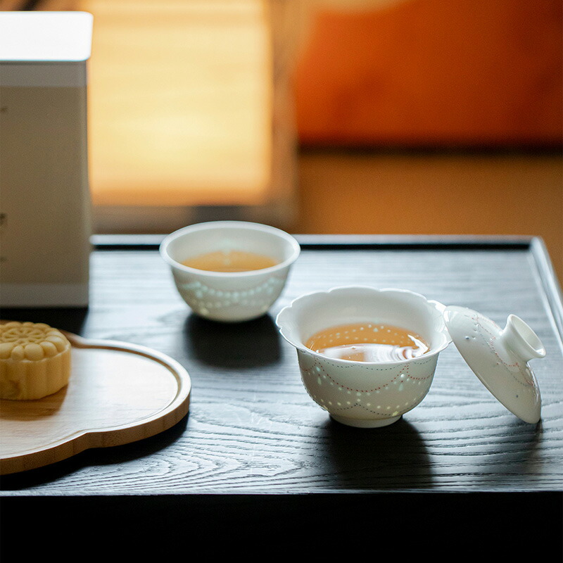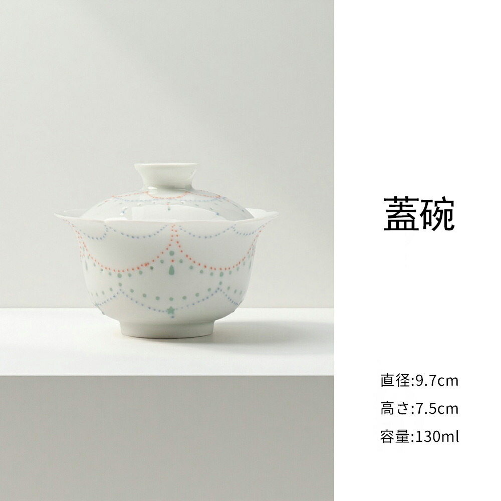 玲瓏磁 蓋碗 湯冷まし 茶器セット 白 蓋碗 湯呑(口径:6cm) 湯呑(口径:7.7cm)