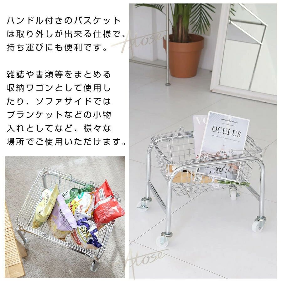 】カラーバスケットがインテリアのアクセントになるバスケットワゴンです。