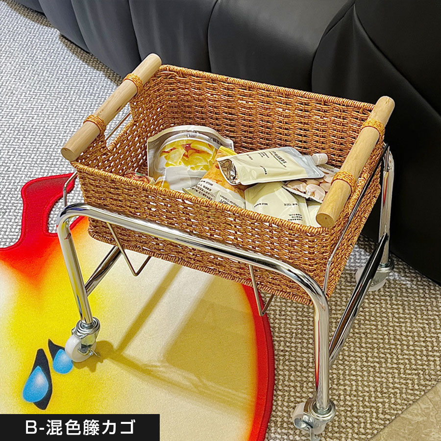 キャスターワゴン ハンドル付きカラーバ バッグ 小物 ブランド雑貨 超目玉商品 シルバー A-純色籐カゴ B-混色籐カゴ