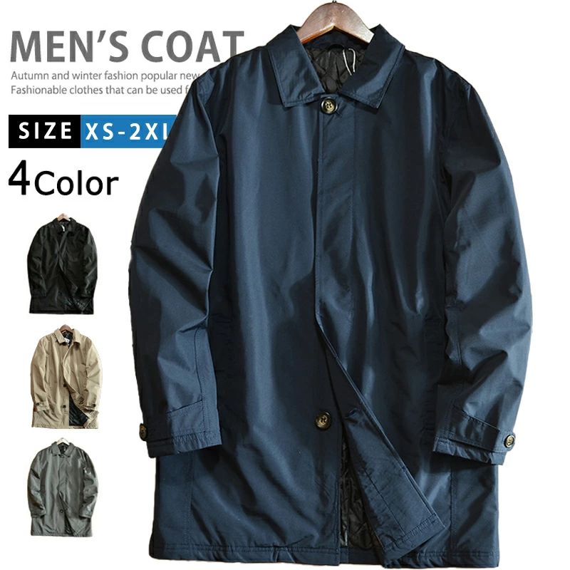 ステンカラーコート メンズ ロングコー コート ジャケット 続々入荷中 黒 ベージュ ネイビー ダークグレー XS S M L XL 2XL