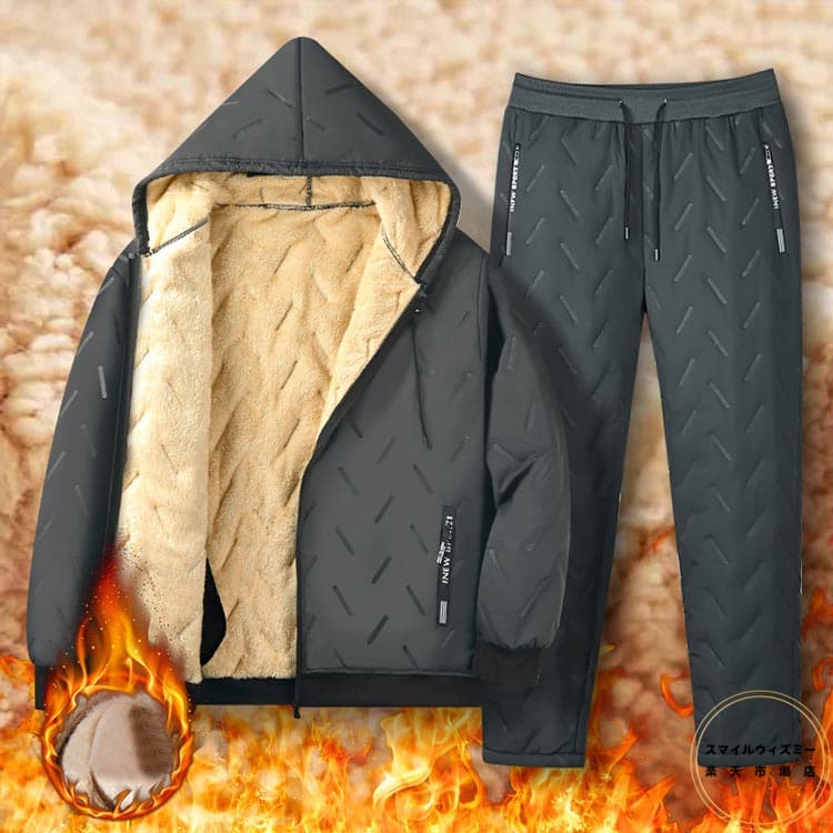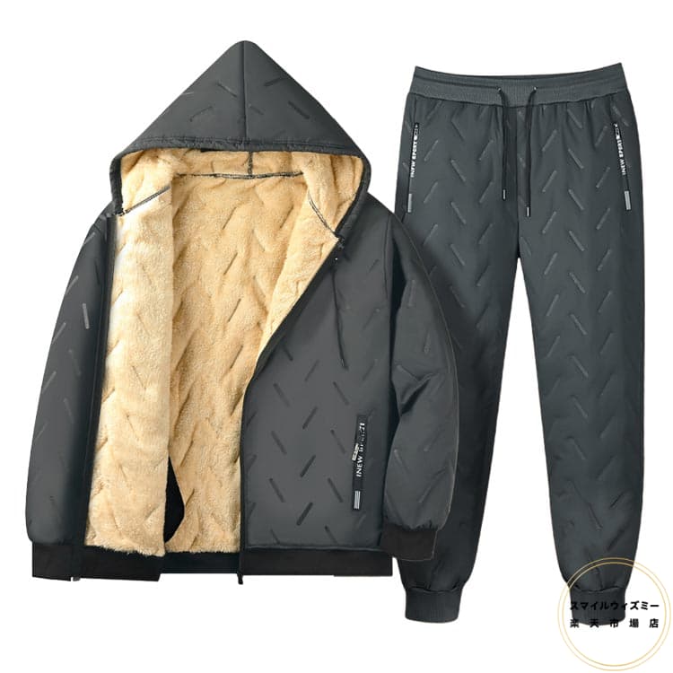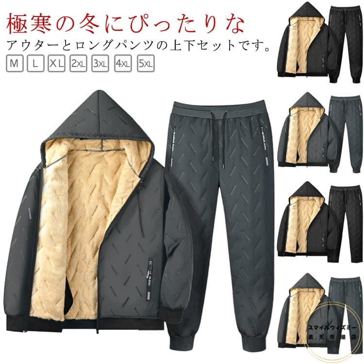 防寒 裏起毛 上下セット アウター ルームウェア ロングパンツ 中綿入り フード付き 厚手 ゆったりサイズ 秋冬用 メンズ カジュアル ゴルフウェア 部屋着 防寒着 スポーツ