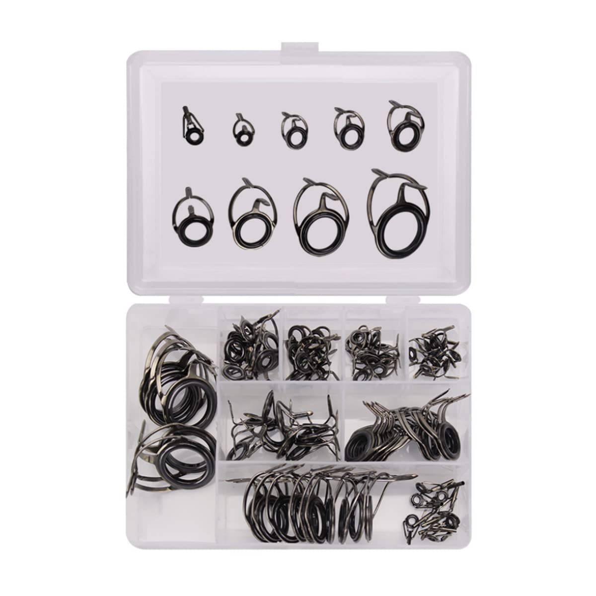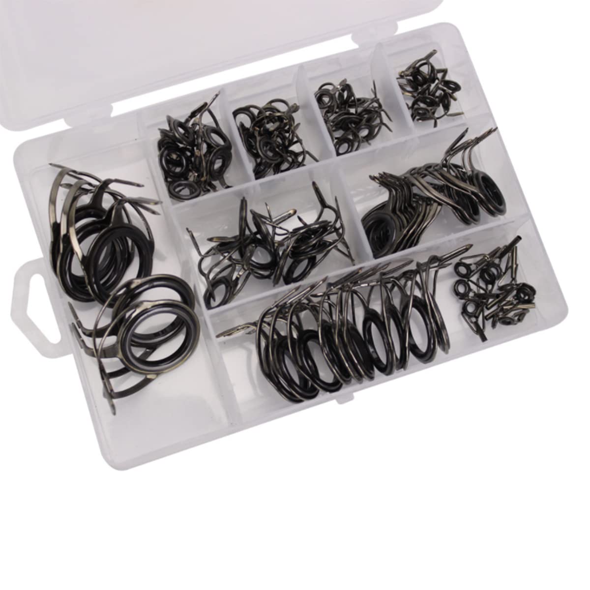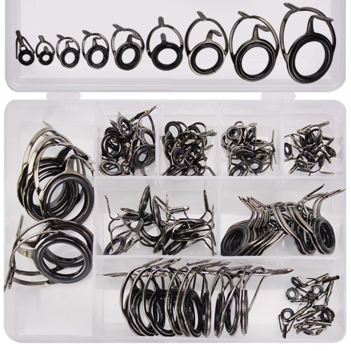 釣り竿ガイド トップガイド 釣り竿修理キット ロッドガイド 両足ガイド 高炭素鋼 セラミック製 交換 修理 釣り竿先端修理キット シーロッドなどに適しています 収納ボックス付き 85点セ ルアーポール