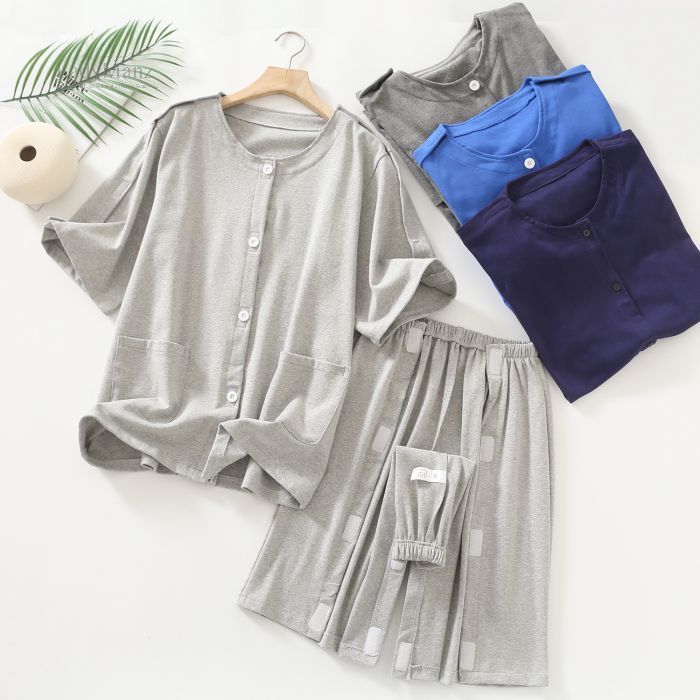 介護用パジャマ 寝たきり パジャマセッ グレー(メンズ) ダークグレー(メンズ) グレー(レディース) パープル(レディース) ピンク(レディース) ピンク・チェック柄 ブルー・チェック柄 グリーン・チェック柄 ブラウン・チェック柄 M L XL XXL