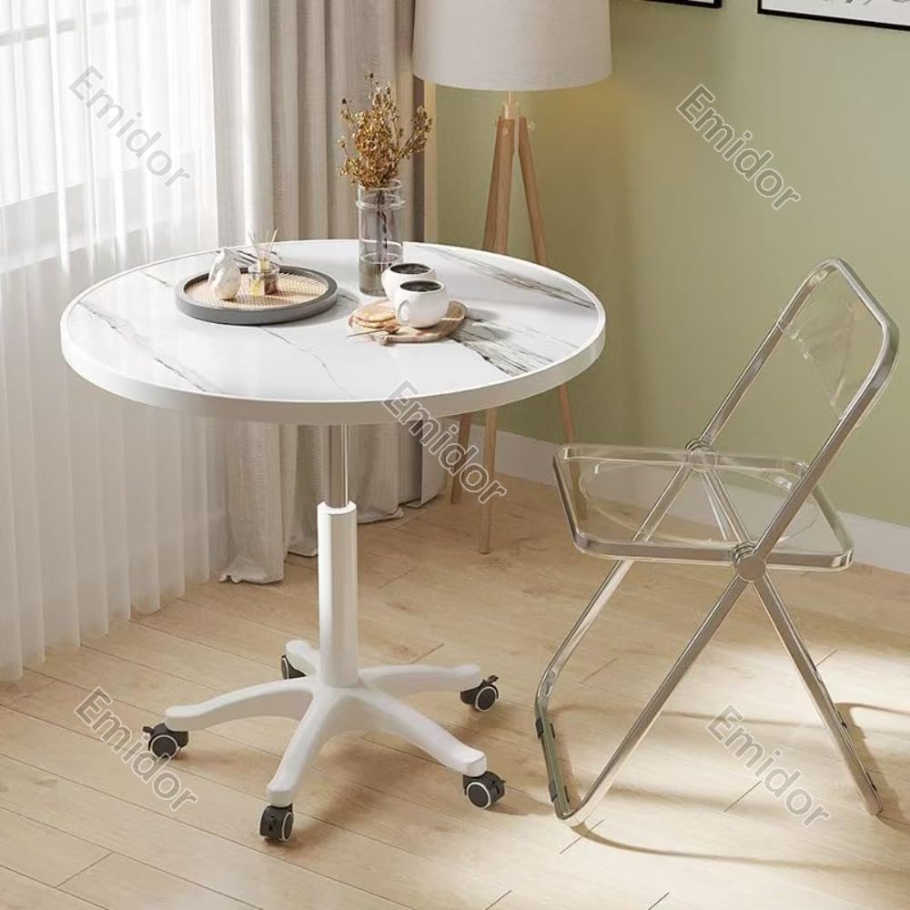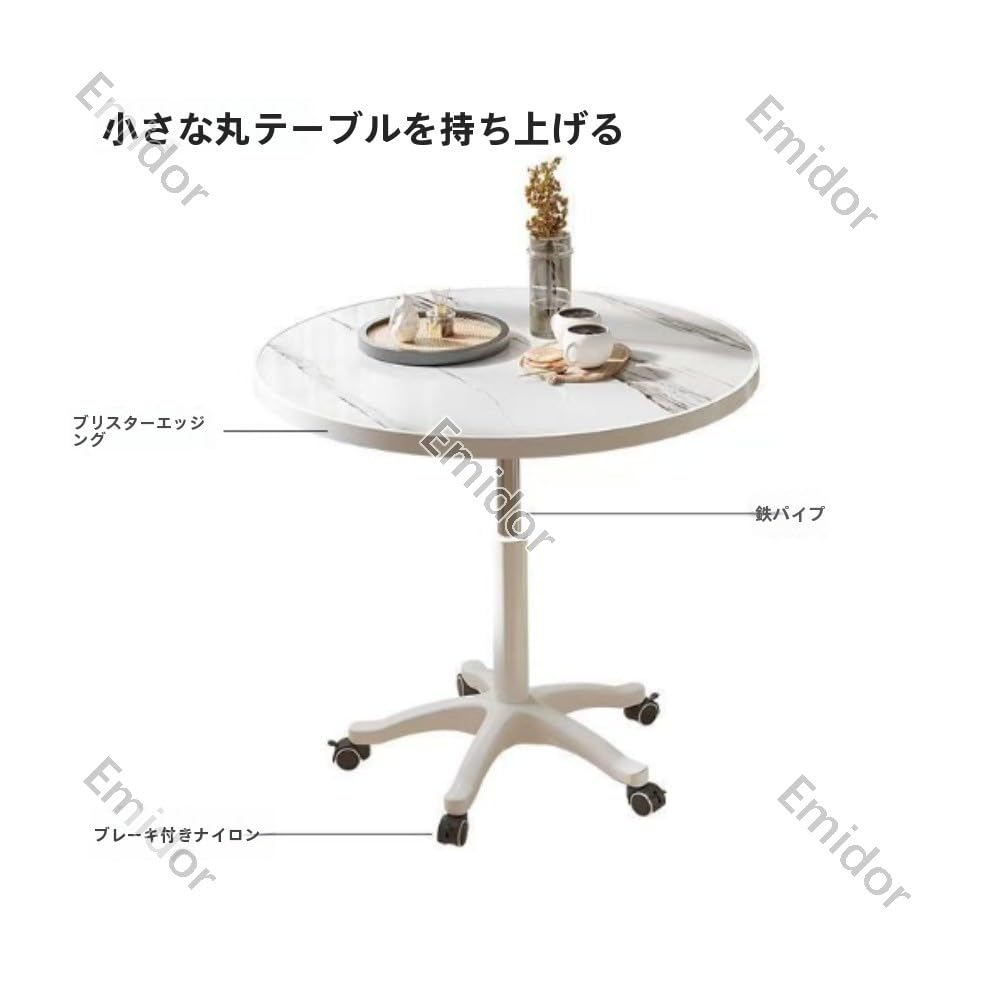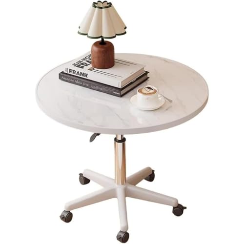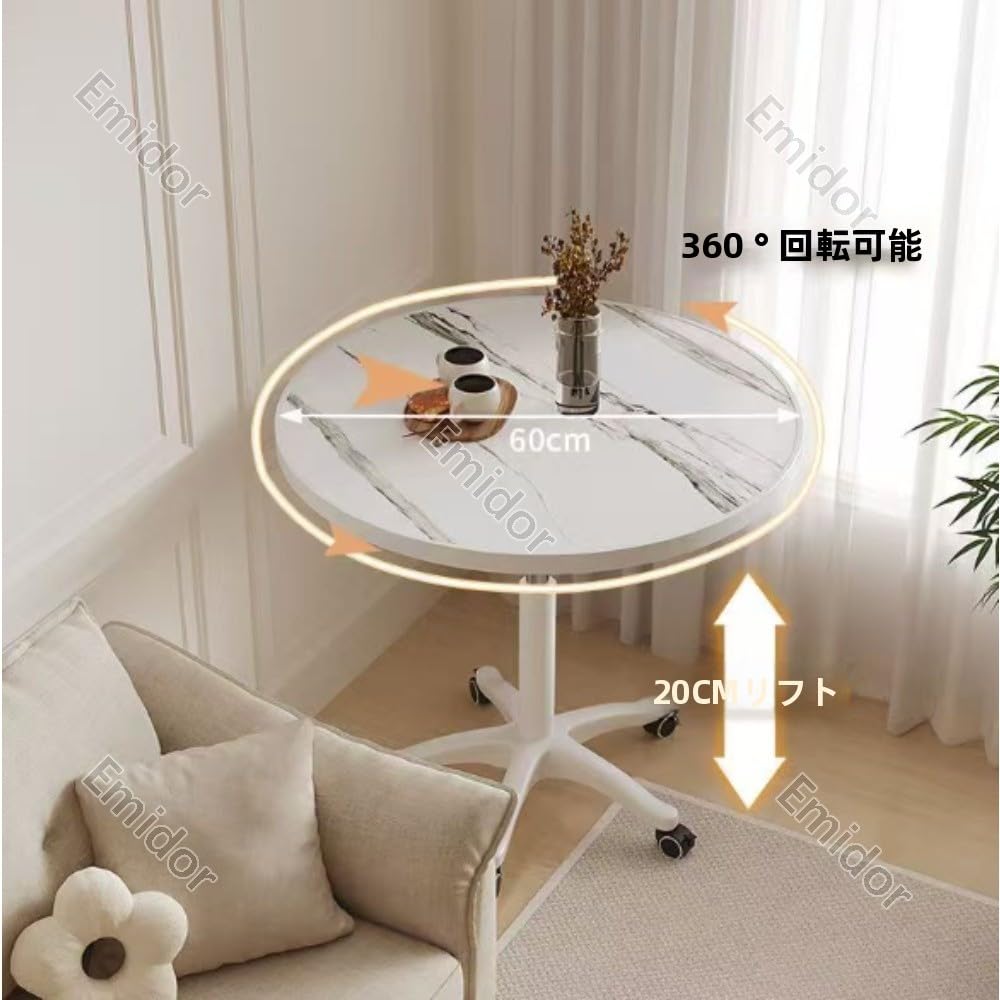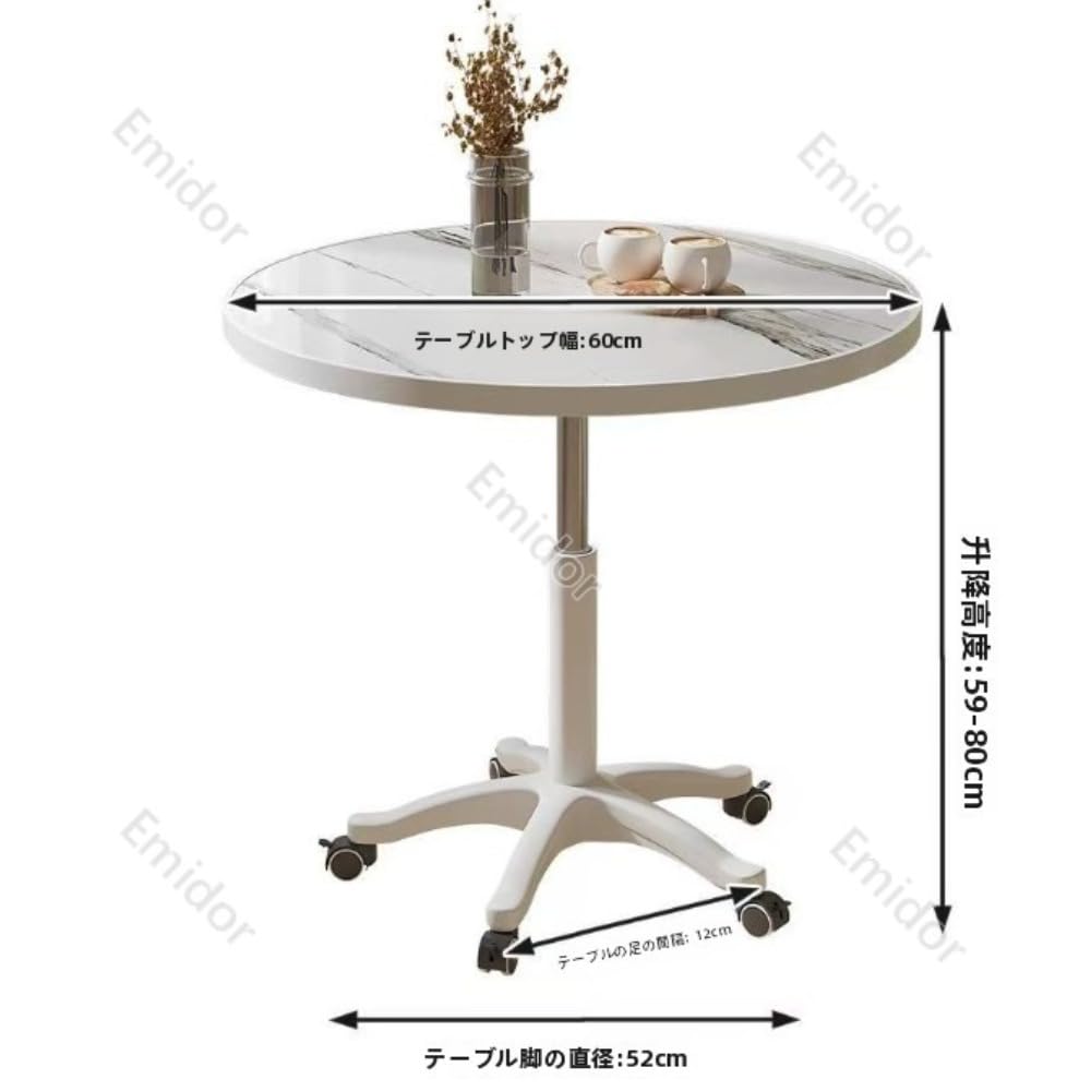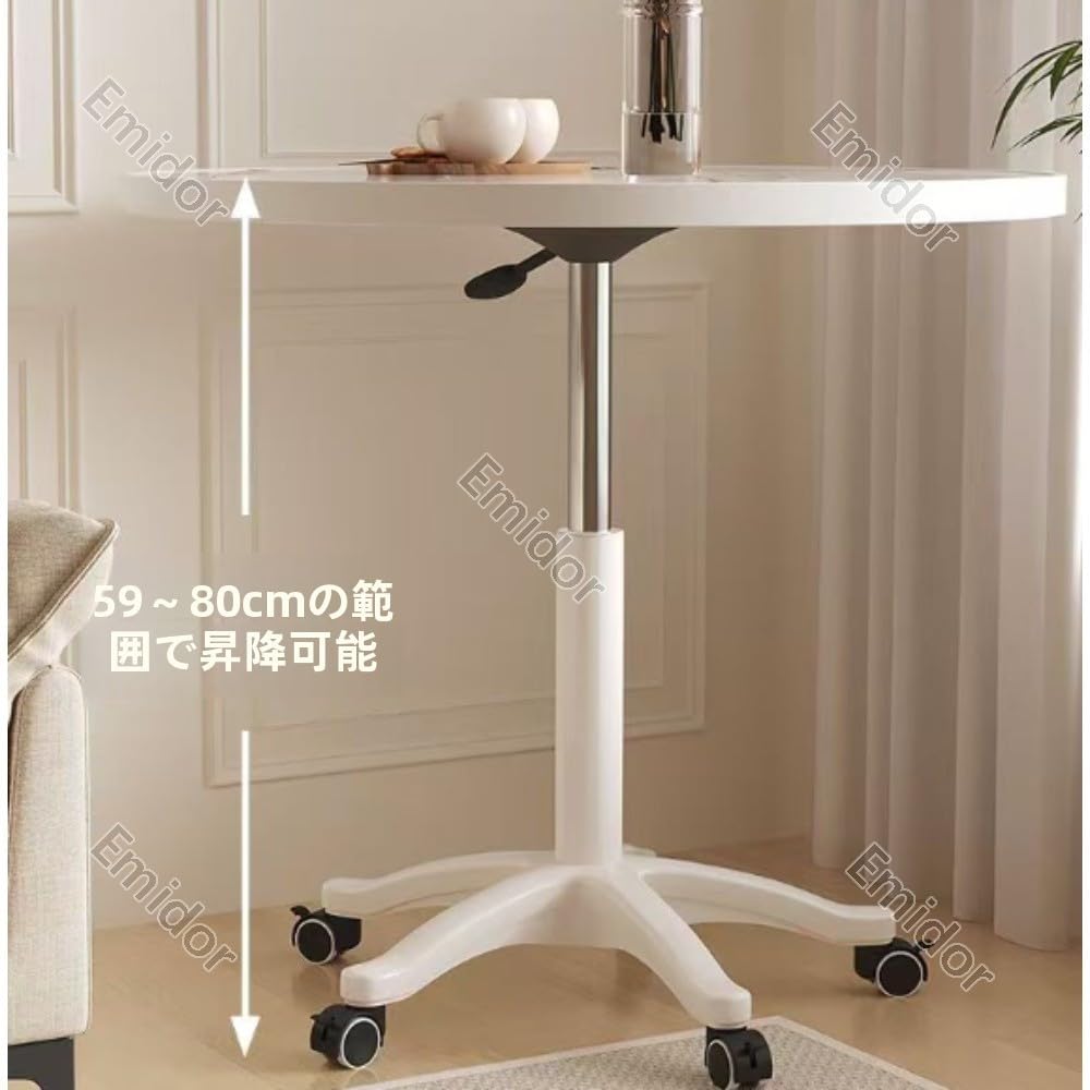 丸型デスク、ダイニングテーブル、サイドテーブル、高さ調節可能、キャスター付き、強力な耐荷重性、家庭 オフィス、応接や商談に最適、60*59-80cm