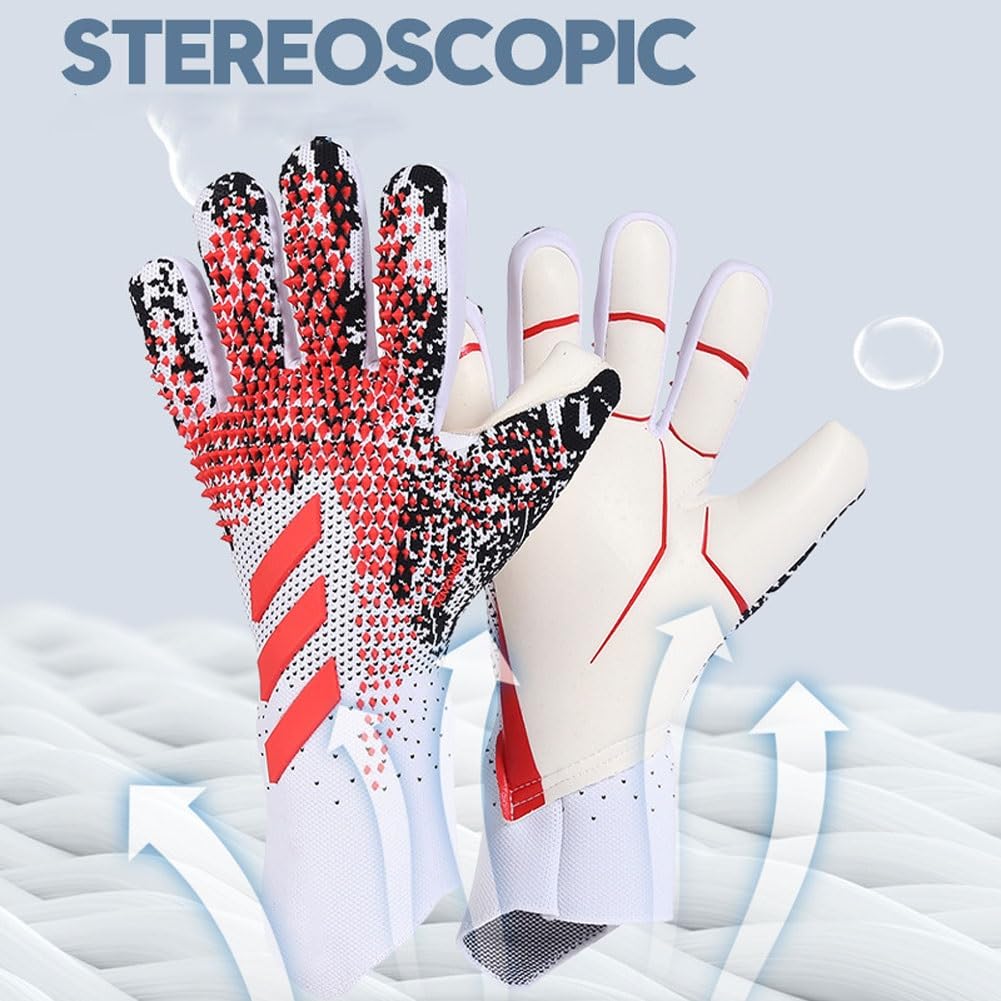 サッカーゴールキーパーグローブ、プロ仕様の滑り止めゴールキーパーグローブ、強力なグリップ 耐摩耗性保護、指の保護、男の子、子供、大人用