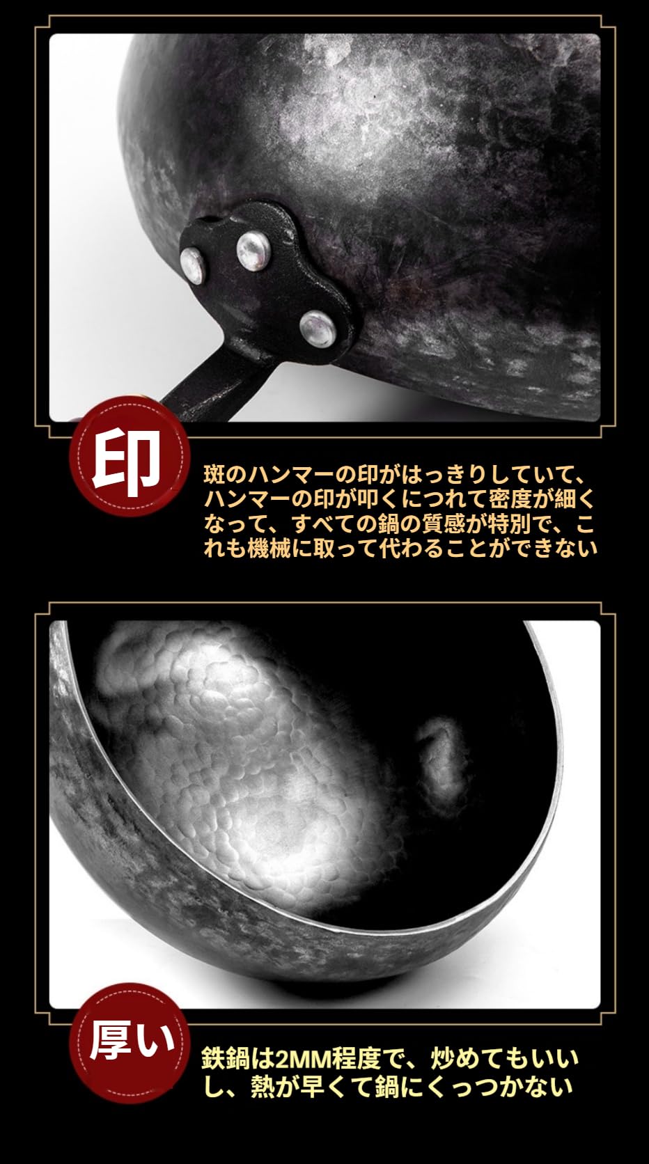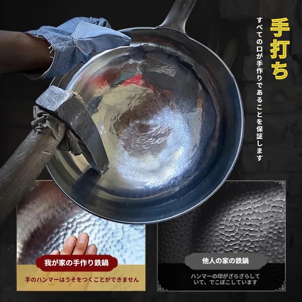 中華鍋 炒め鍋 手作り鉄鍋 古法大腹鍋 ストライプスタイル ミラースタイル 魚鱗スタイル 22cm 24cm 26cm 28cm