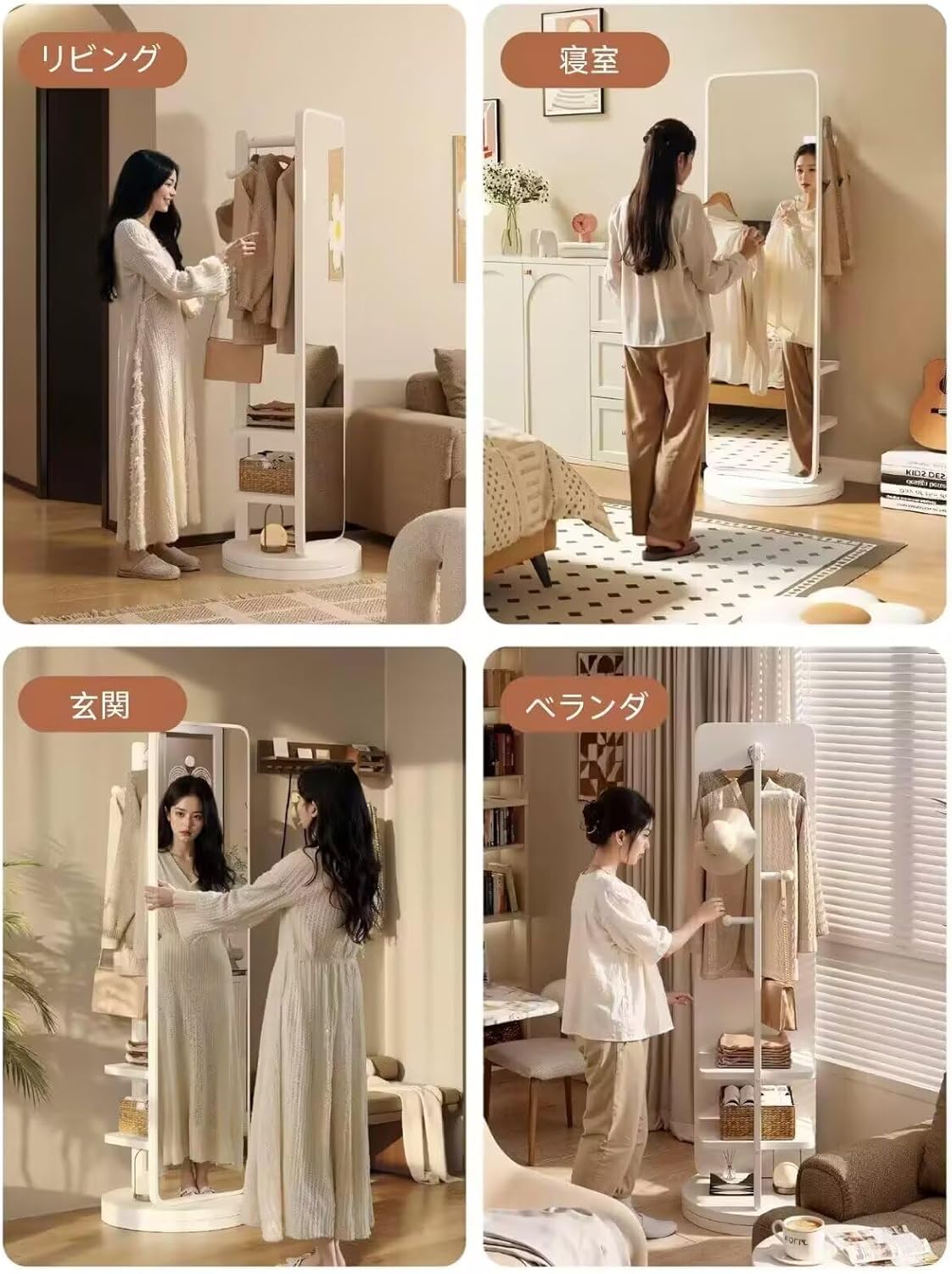 全身鏡 姿見 スタンドミラー ハンガー ホワイト ブラック ブラウン ナチュナル 長さ170x幅40cm 長さ170x幅50cm