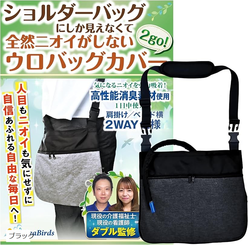 導尿バッグ ウロバック カバー 消臭 現役の介護福祉士・看護師監修 ショルダーバッグ 2WAY おしゃれ 採尿 導尿チューブカバーつき 洗濯機OK 車椅子 ベッド 2500ml タテ長ウロバック対応 1個 ブラック